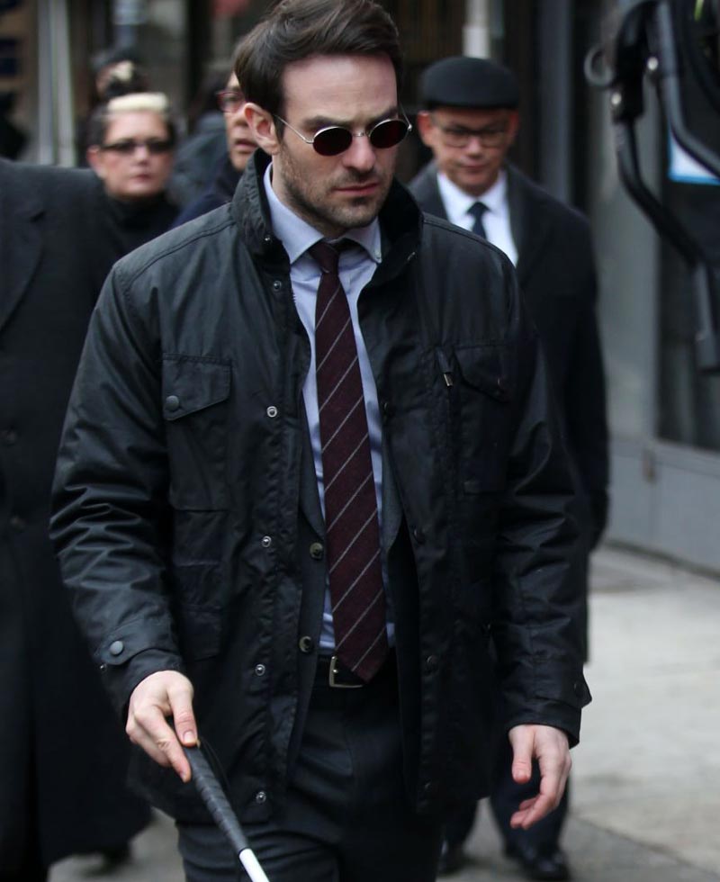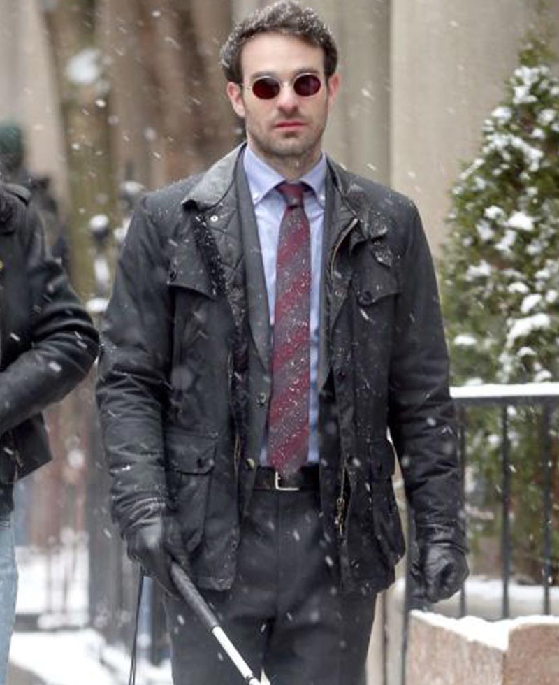 Charlie Cox is a very talented American actor. Matt Murdock jacket is worn by him in latest TV series the defender. He played as mutt Murdock. It has been manufactured from cotton fabric with viscose lining interior support, having black color. The jacket has snap tab strap collar with stylish buttoned closure front. Four big flap pockets are given on chest and waist for your essentials. The defender Charlie Cox jacket has decent look and unique design. The sleeves are full in length with buttoned and straps cuffs. It makes you attention grabbing among people.