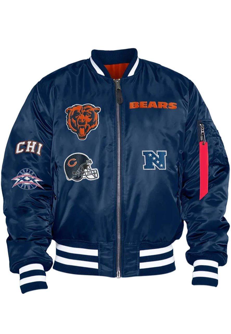 If You Want to Look Classier While Elevating Your Entire Look, Then the Chicago Bears Ma-1 Bomber Jacket is an Ideal Choice, It Will Add Such a Touch of Elegance to Your Outfit. The Chicago Bears Jacket Has Been Fabricated by Premium-quality Satin to Make It Lightweight and Wearable in All Seasons, It Soft Viscose Lining Ensures Comfort and Keeps You Dry. The Navy Blue Color Will Enhance Your Smartness. The Chicago Bears Bomber Jacket Has Been Designed by Using All Smart Features Like a Rib-knitted Stand-up Collar, Smooth Zippered Closure, Rib-knitted Cuffs and Hemline, and Side Waist Pockets to Keep Your Small Accessories. The Chicago Bears Jacket is Both Trendy and Timeless.