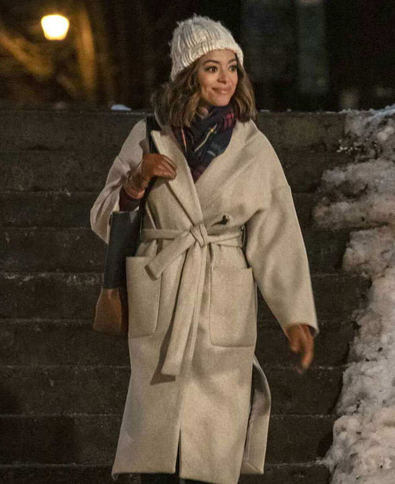 The idea of this coat is taken from the famous American movie called Christmas Unwrapped where the talented actress Amber Stevens West wore this coat when she was portraying the character of Charity Jones. The external side of this coat is stitched with a wool fabric of top quality. The inner fabrication of this apparel is done with smooth and soft viscose lining that keeps you warm and comfortable all the time. Charity Jones coat has an appealing grey color. There is a belt around the waist of this elegant coat for the closure. Christmas Unwrapped Amber Stevens West coat has a lapel style collar. There are two front waist pockets on this coat as well for the closure. The coat has open hem style cuffs on long length style sleeves.