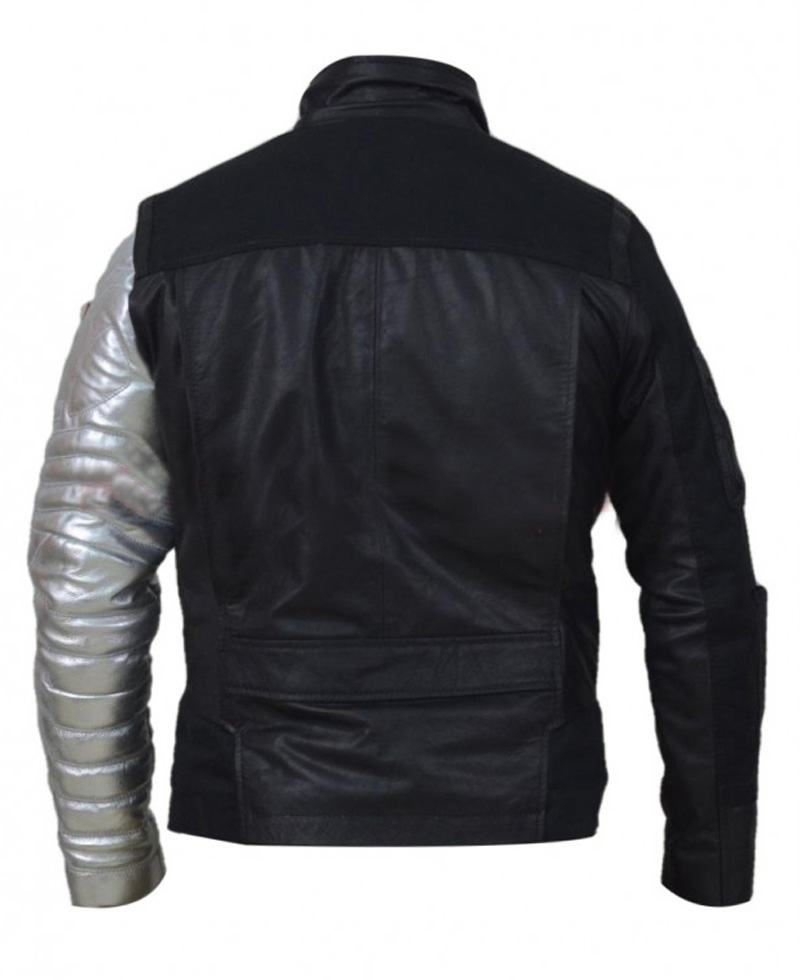 Captain America Civil War Movie Winter Soldier Leather Jacket with Sliver Sleeves