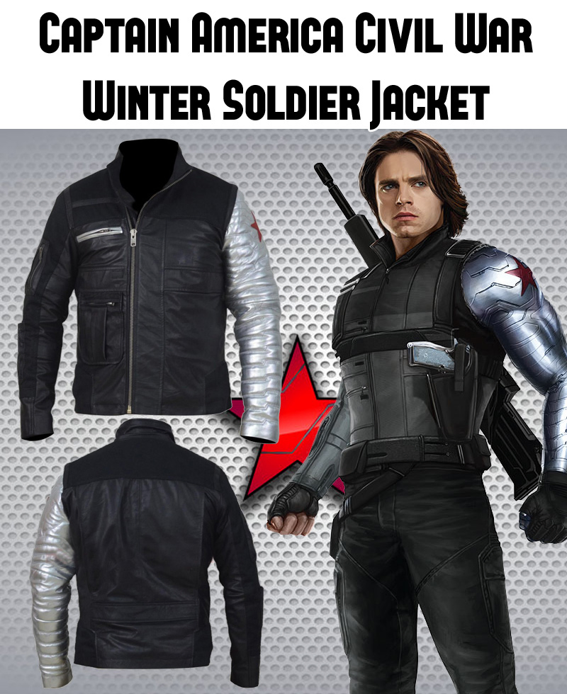 Those who love action movie will definitely know about the super hit movie “Captain America Civil War”. It is the popular movie of 2016. The super appealing Winter Soldier Jacket has worn by the superstar Sebastian Stan. His stunning appearance has impressed everyone too much. The genuine leather is used in the preparation of the Winter Soldier Jacket. The special feature is its left padded stitching silver sleeve. The right sleeve is made of leather whereas left silver sleeve forms attractive impression. Two zipper pockets are on the right side; one is on the chest and second is the waist pocket. The stand up collar of black Winter Soldier Leather Jacket has asymmetrical style. A beautiful red star is present on the silver sleeve that is astounding. Two inside pockets are also given. If you crave to look like an action hero you must wear Civil War Winter Soldier Jacket.