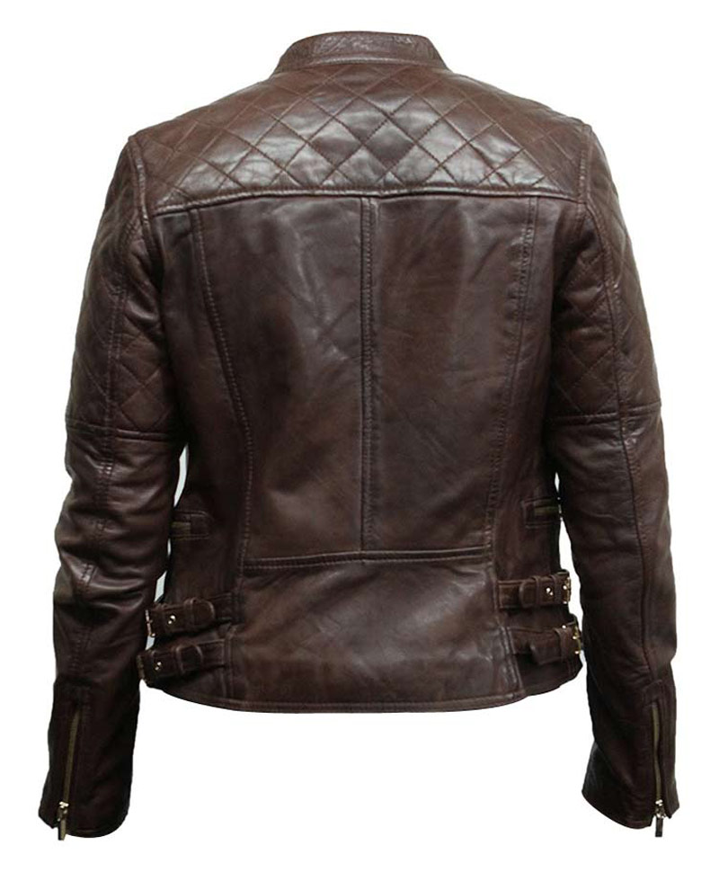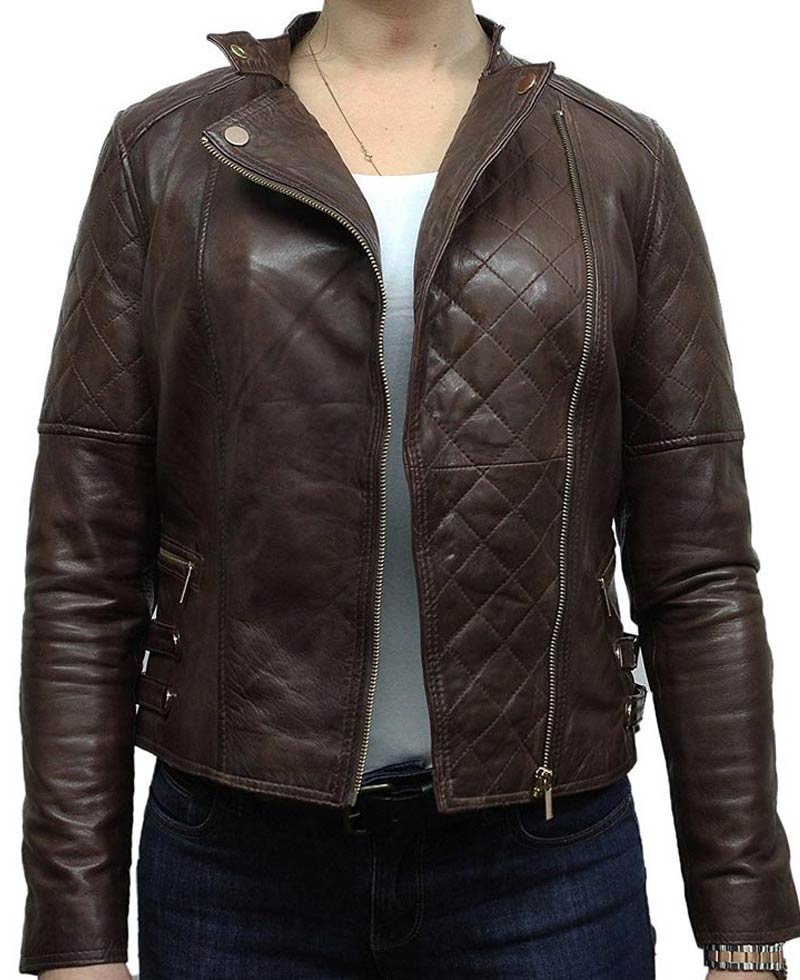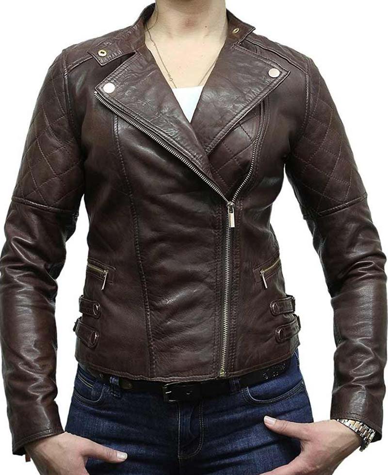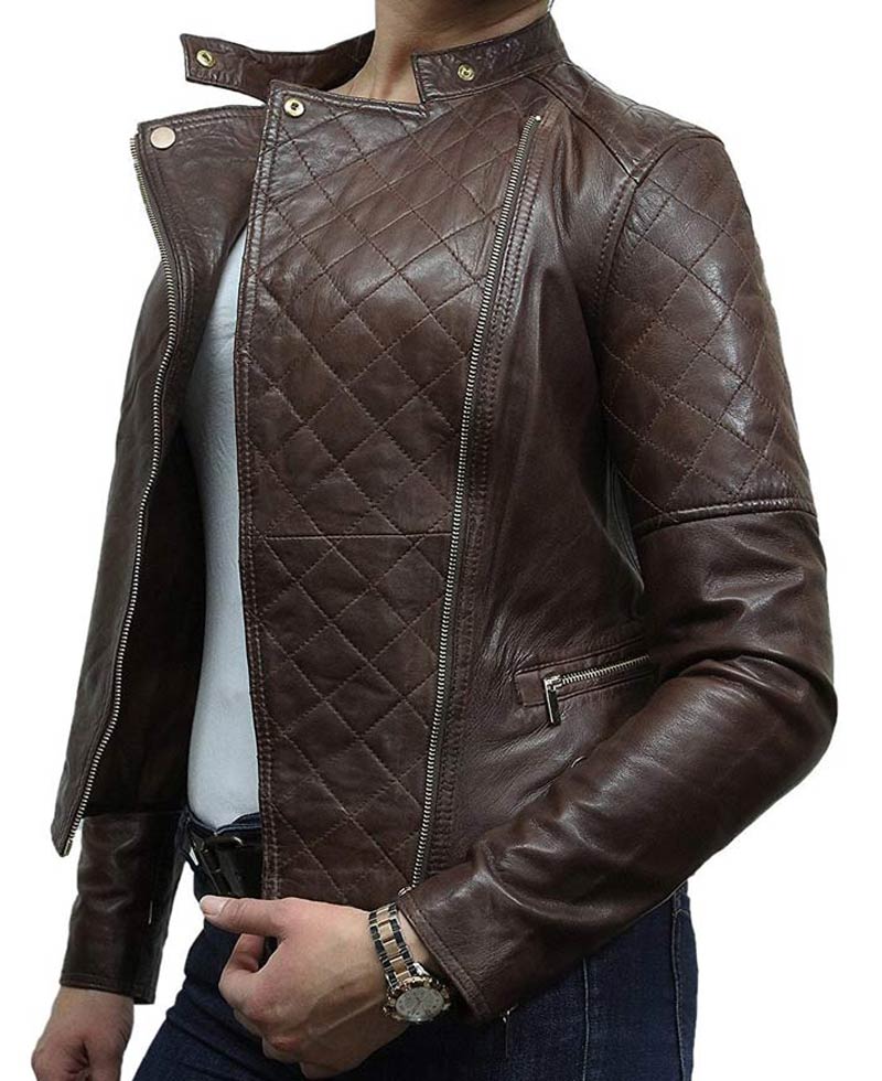 There is no better way to show off your inner diva personality then wearing the chicest outfit and that too with a nice quality leather jacket. The best option to be on your top is to opt for dark brown leather jacket women’s which is available in both genuine leather to provide comfort to the wearer. Classic leather motorcycle jacket has an asymmetrical zipper closure accompanied with lapel snap tab collar and studs on the edges of the collar to promote the high-class modish vibe of the wearer. To make it look different from the rest, dark brown leather jacket women’s has full length sleeves with zipper cuffs and uniquely designed horizontal zippers on both sides with double buckle detailing’s beneath the zipper on the waist. The chocolate brown color of classic leather motorcycle jacket along with quilted design on shoulder and upper arm radiate the richness and makes it look apart from others.