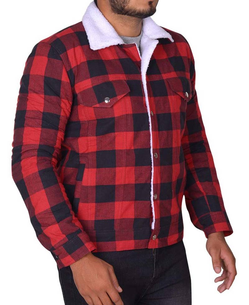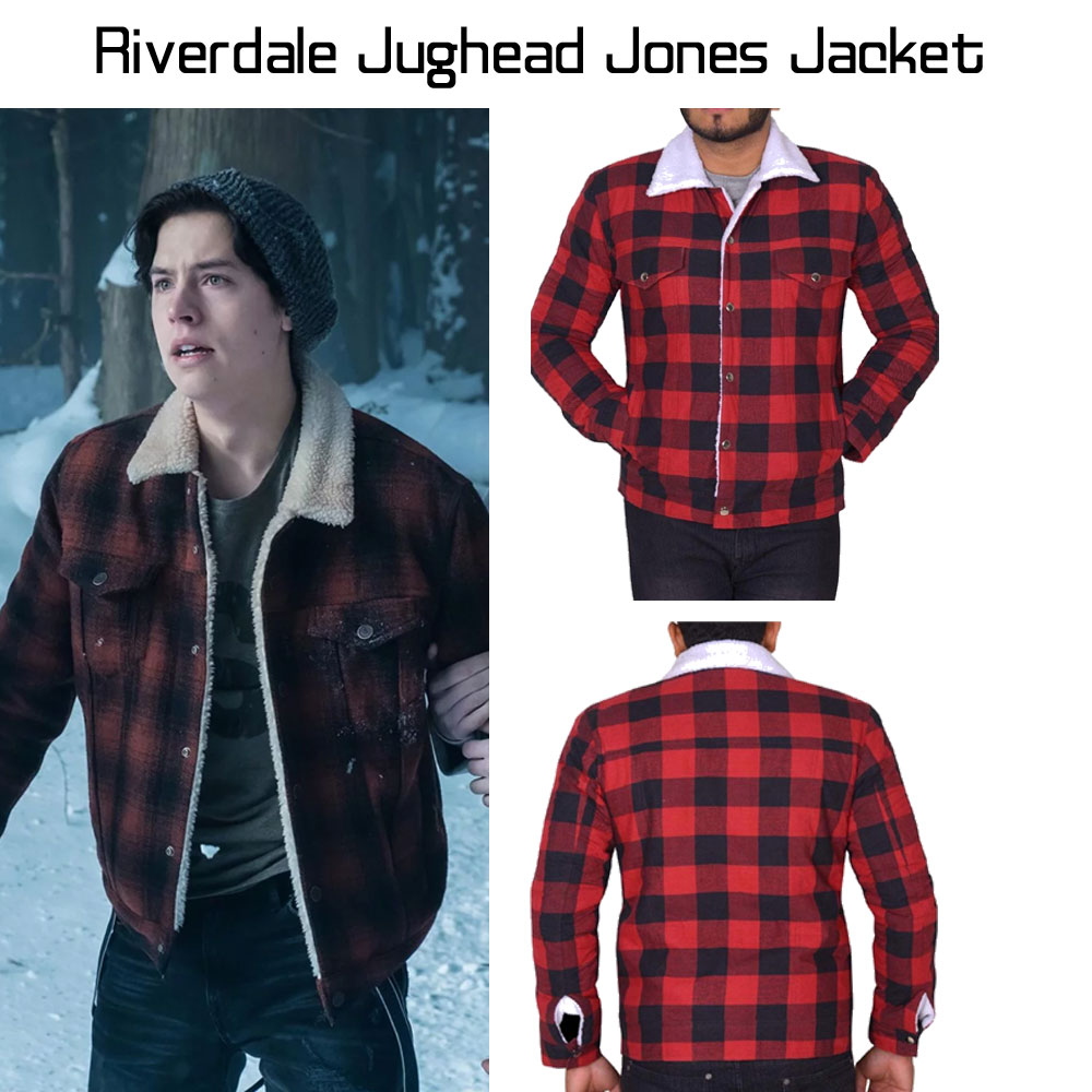 In the fashion world Jughead Jones Jacket is a proof of style and beauty. American star Cole Sprouse dressed it in the famous drama series named as “Riverdale”. Top class cotton blended fabric is used to make the outer cover. Durable shearling inner lining has made it more comfortable. Faded black and red colors have formed alluring look of the attire. Shirt shearling collar is really astounding. Cole Sprouse Riverdale Jacket has two flapped pockets on chest with button. Front closure is connected with high quality zip. Two side waists pockets are also added. It is a perfect selection for all gathering where you want to impress others. Sleeves are long and have normal fitting. Buttoned cuffs give simple impression. According to the features, the price is not very high. You can easily afford it.