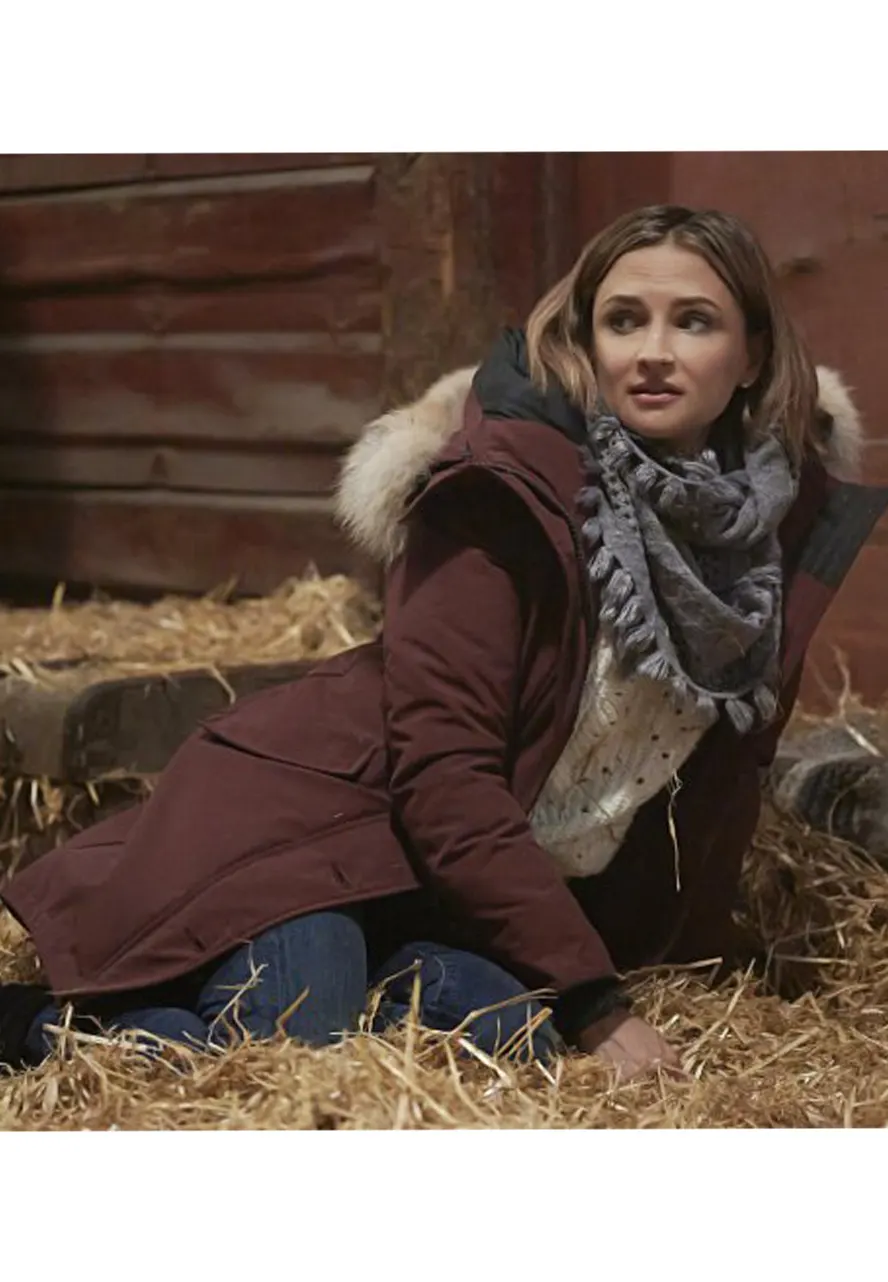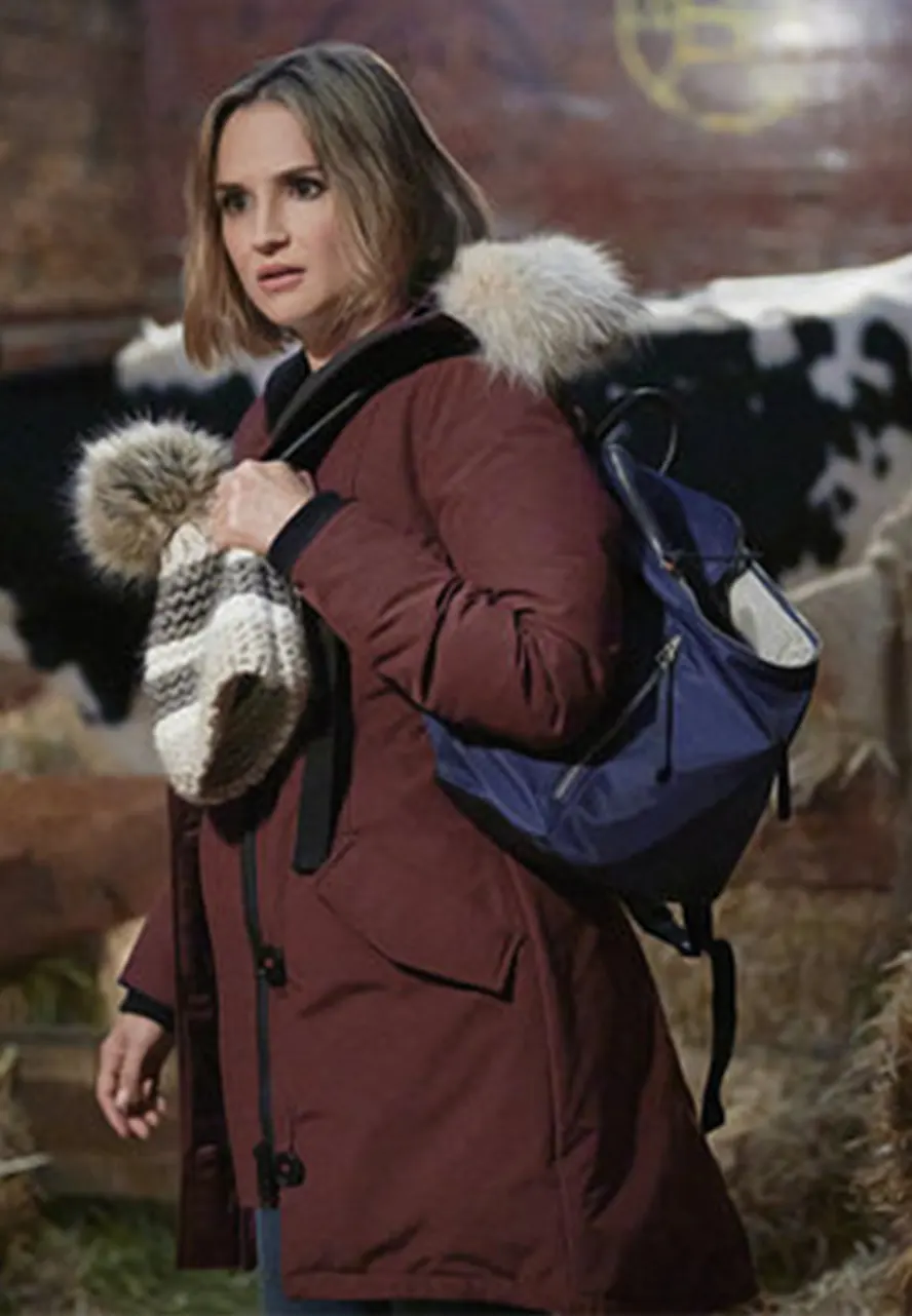 The idea of this Christmas Parka is taken from the famous American Hallmark movie called Cross Country Christmas where the talented actress Rachael Leigh wore this parka when she was playing the character of Lina Gordon. Lina Gordon parka is fabricated with hgih quality cotton fabric. The vibrant red color makes the parka more desirable to wear. The Lina Gordon parka comes with an internal smooth viscose lining attached that gives you warmth and comfort. There are two front waist pockets on this parka where you can secure stuff. Cross Country Christmas Rachael Leigh Cook parka has open hem style cuffs on full length style sleeves. There is a ykk branded zipper attached to the front side of this parka for the closure. The apparel comes with an attached hoodie that looks attractive.