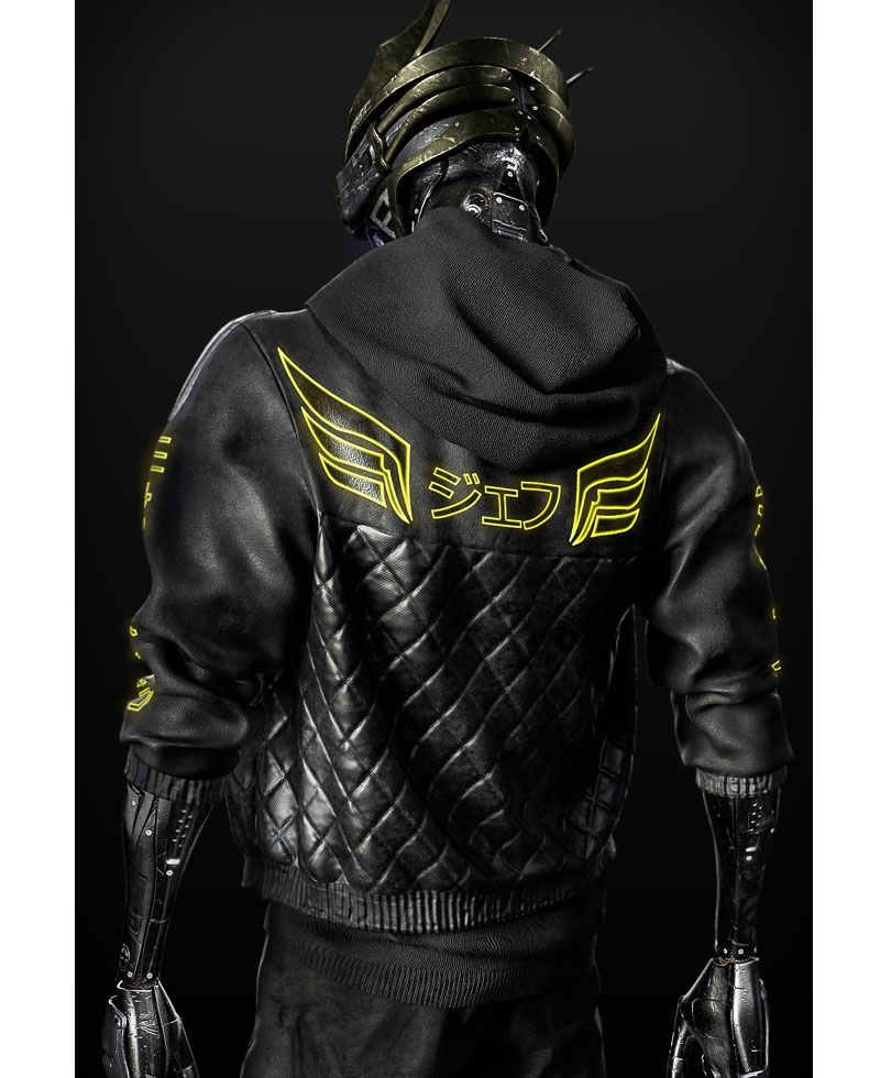 The idea of this black leather jacket is taken from the famous video game called Cyberpunk 2077, where the game character named Cyborg wore this classy leather jacket. The external side of this jacket is manufactured with premium quality genuine leather material. It comes with an inner lining of smooth and soft viscose that keeps you warm and comfortable all the time. The Cyberpunk 2077 Cyborg jacket has an appealing black color. The jacket has rib-knitted style cuffs on full-length sleeves. There is a YKK-branded zipper on the front of this jacket for the closure. Urban Cyborg leather jacket has a rib-knitted hemline as well. There are two front waist pockets on this Cyborg Black Leather Jacket where you can secure stuff. The jacket looks so attractive with a no-collar look.