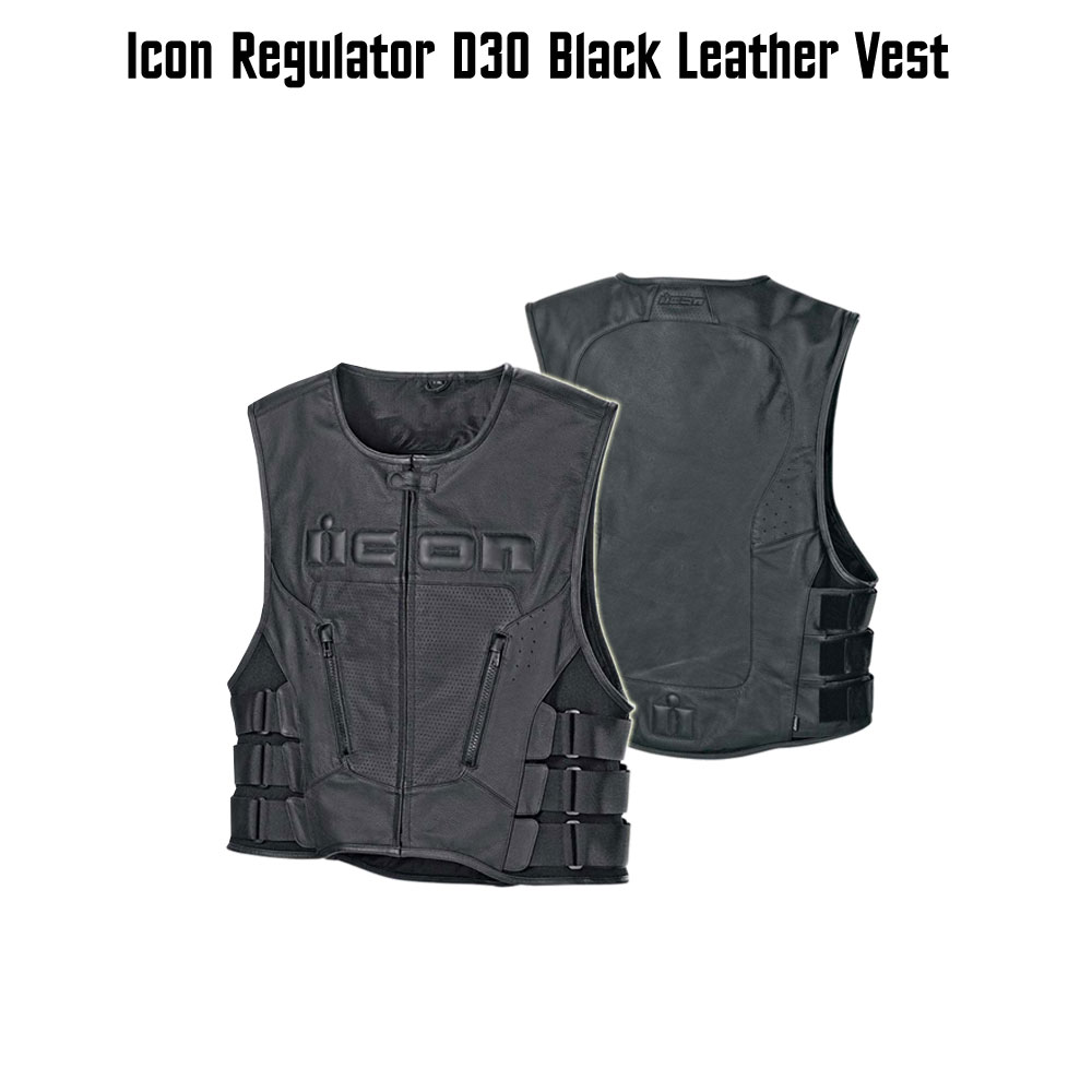 D30 Vest is made from pure genuine leather. The Regulator is made of premium 1.4mm leather chassis. Front zipper closure. Two side zipper closure pockets are given. Collarless style with side fit adjustment straps. D30 Vest has cross-draw pistol pockets along with updated D30 back protector. Large accessible back panel for attaching club patch is present for stylish appearance. Inner viscose lining is used. Icon Regulator Leather Vest has premium YKK zippers and ICON relaxed fit. Black color biker attire is really absorbing.