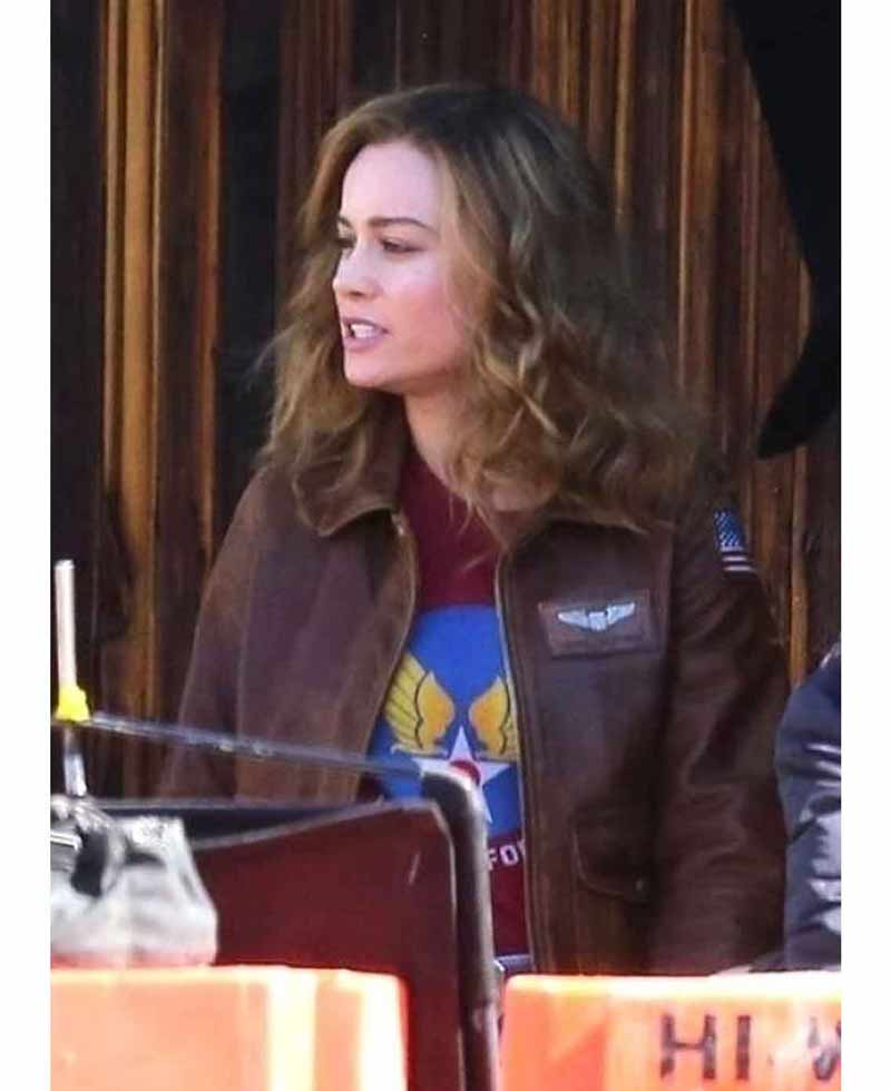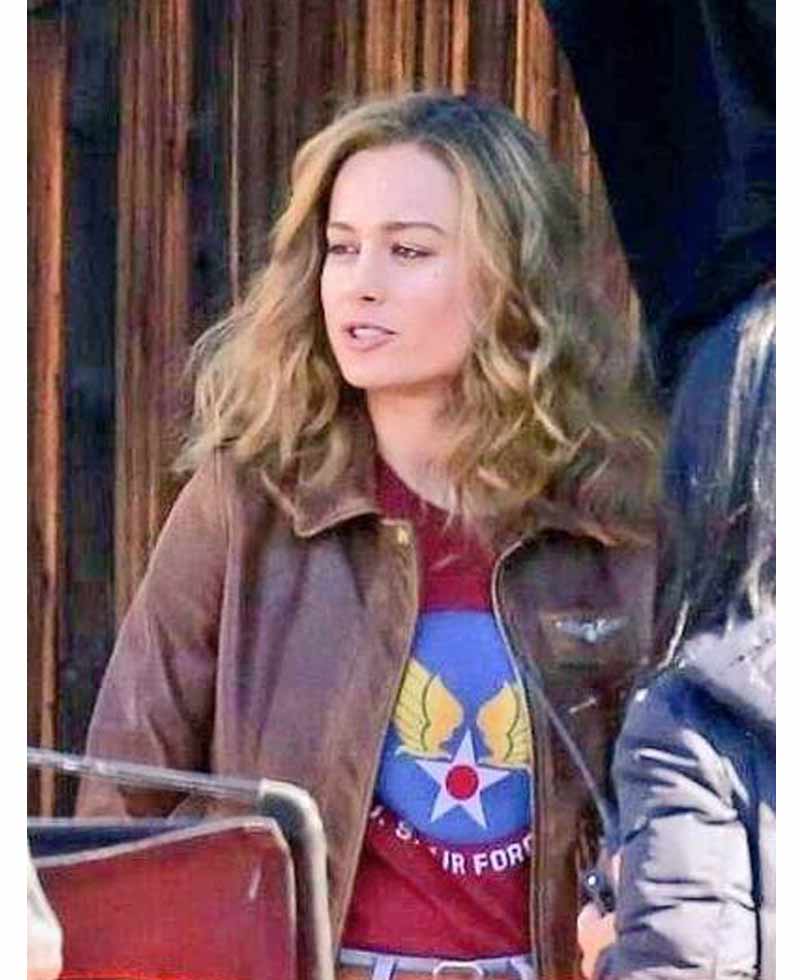 Carol Danvers Brie Larson Flight Pilot Bomber Brown Leather Jacket