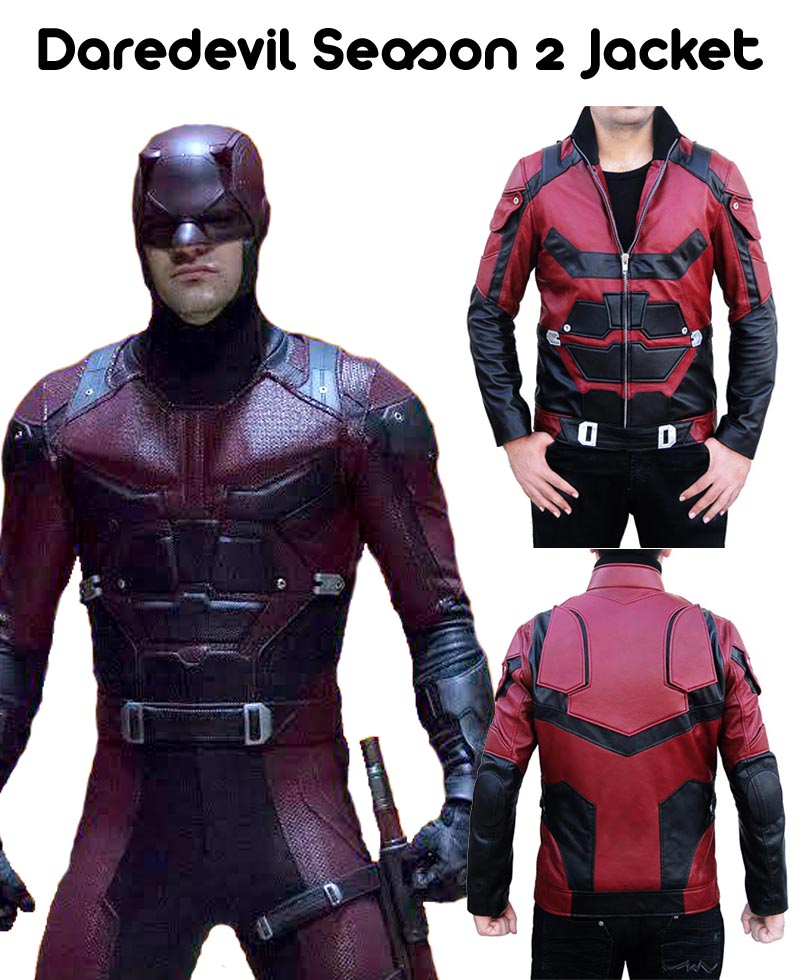 The most captivating Daredevil Season 2 Jacket is the inspiration of the character of an American television series named as “Daredevil”. The impressive hero Charlie Cox has worn it and got special appreciation from the viewers. The Daredevil Season 2 Jacket is prepared in black and maroon shades which are enhancing the beauty. The exterior part of the dress is manufactured from genuine leather or faux leather. The Daredevil Season 2 Leather Jacket has front zipper closure. The padded elbow patch is present in both sleeves. The soft viscose inner lining is added in it. The rib-knitted collar is looking very nice. The Daredevil Season Leather Jacket has armors on upper arms. You will enjoy perforated designs throughout the jacket. It is a perfect selection for all events for all ages. The open hem cuffs are present in the Daredevil Season 2 Jacket. Convert your boring appearance by wearing this.
