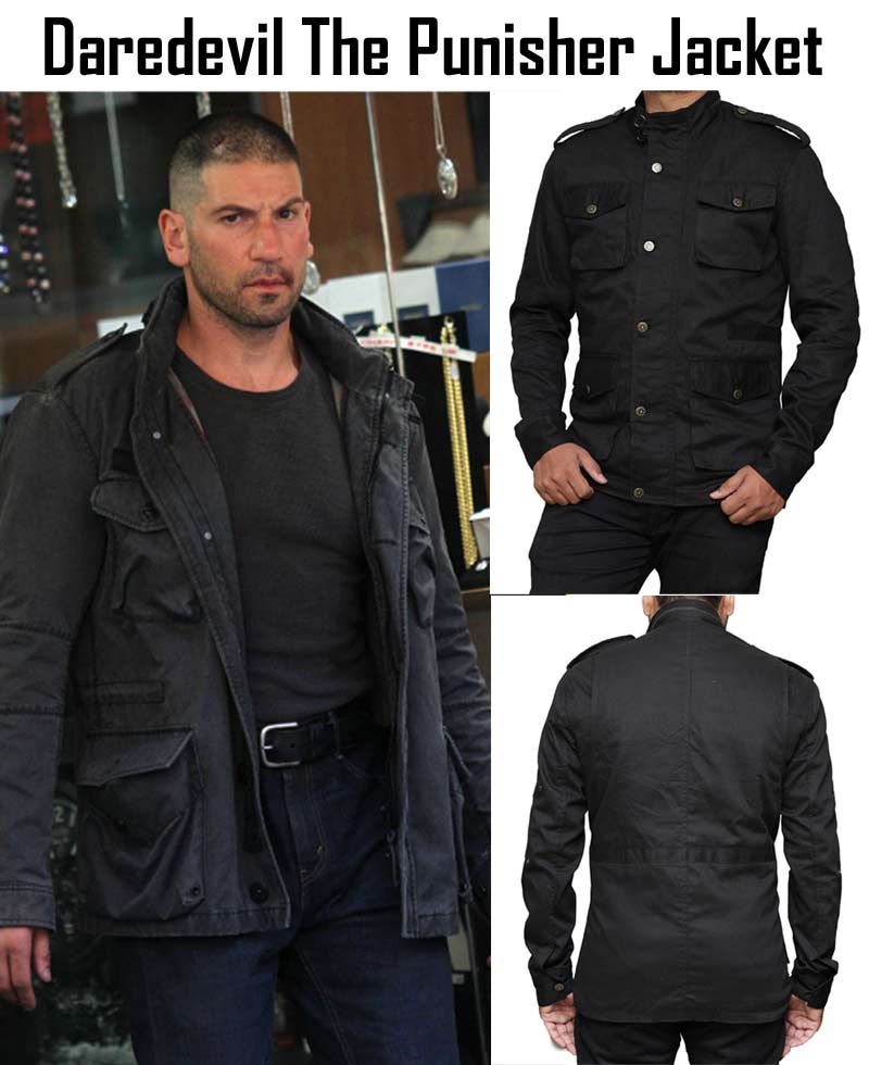 From the horizon of the Daredevil television series we bring you the best in design celebrity attire formatted in cotton material in top quality fabric. Punisher Jacket is setup with inner viscose lining and hemline on bottom. It is one of the supreme collection we have on our online store, Films Jackets. The Punisher Daredevil Jacket includes front zipper closure, zipper closing also on the inside and two flap pockets in a pretty stylish manner and attraction is wonderful with premium design. Daredevil Punisher Jacket also comprised of buttoned cuffs while it is actually a collarless design in male fashion. This outerwear looks quite phenomenal on Jon Bernthal as Daredevil in the series. Jon Bernthal Daredevil Jacket is premium stitched and supreme in designing and embrace black color.