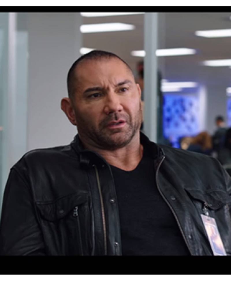 My spy Dave Bautista leather jacket was worn by the character JJ in the famous comedy movie my spy. The jacket is made from great and enduring quality genuine leather material and holds soft Viscose on its inner side which will make sure that you are not cold and also gives you a relaxing sensation. The jacket comes in black color. JJ Leather jacket has a snap tab button with zipper for the conclusion. The jacket has a round neck style collar. It comes with long length sleeves on open hem cuffs. The leather trendy jacket has front chest flap and side waist pockets for keeping stuff secure. You can wear this outstanding jacket for formal and informal occasions.