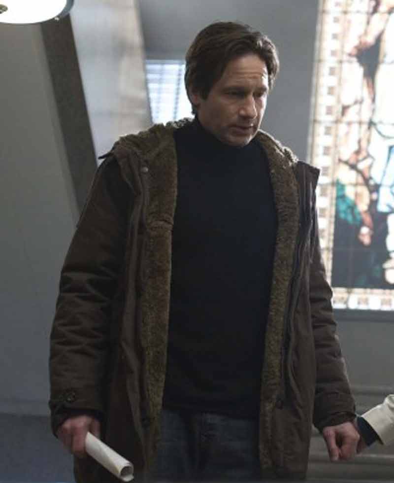 David Duchovny The X-Files Fox Mulder Shearling Brown Cotton Coat