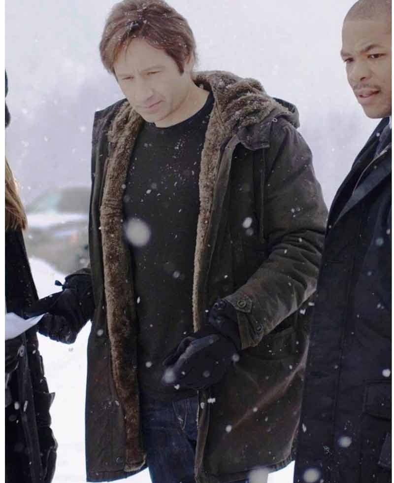 fox mulder shearling coat is manufactured from the high-quality cotton material. This coat will give you an engaging appearance. The quality of the material is enduring and long-lasting. This coat has an inside soft shearling lining that makes it comfortable. This coat will protect you from cold weather and will keep you warm. david duchovny the x-files shearling coat has a shearling style collar. This coat has front stud style closure that fits in perfectly with the style of this coat. This coat has full length sleeves with belted cuffs that looks impressive with this coat. This coat has a fur attached hoodie.  This coat is available here in a brown color. You will fall for every feature of this coat. Order this coat right now before we run out of stock.