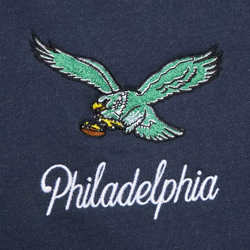 Expertly stitched for long-lasting durability and premium craftsmanship, the Eagles varsity jacket is a perfect mix of style and fan pride, a must-have addition for any true Eagles supporter.