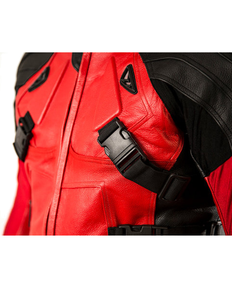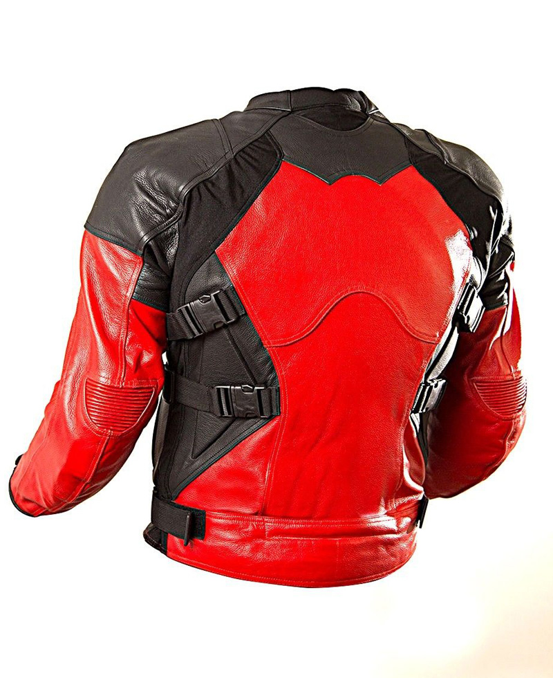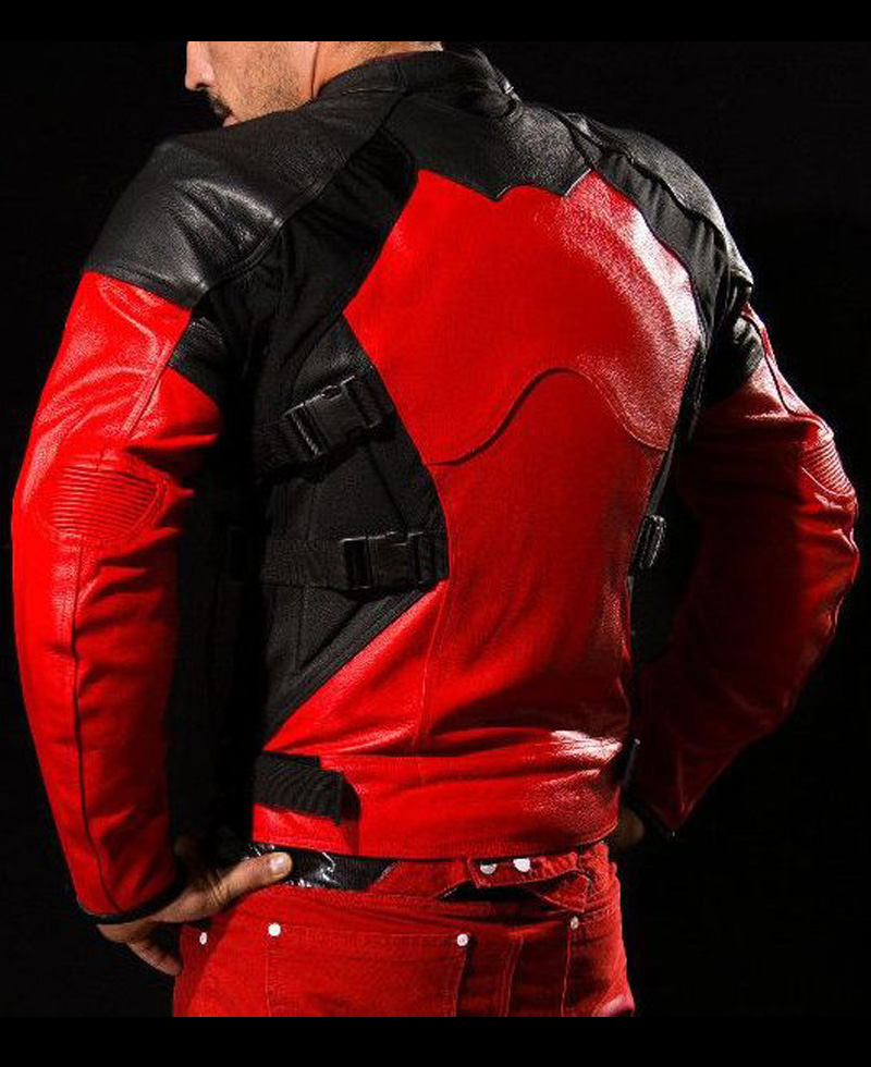 Red and Black Genuine Leather Deadpool Motorcycle Jacket