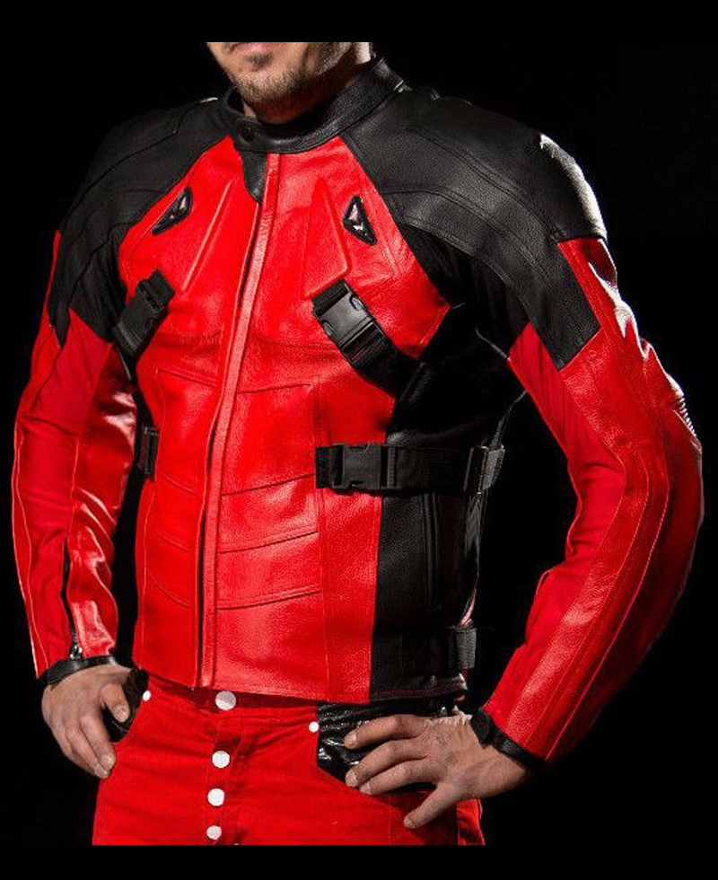 The Deadpool Motorcycle Jacket is the latest outfit of the fashion industry. It has got enormous popularity therefore it is present in the wardrobe of all fashion followers. The outer shell of the Deadpool Motorcycle Jacket is prepared from the best quality cow leather. It was first shown in the American film named as “Deadpool” in 2016. The color is the amazing mishmash of red and black which has made Deadpool Leather Motorcycle Jacket super appealing. This combination is used rarely but it always makes your appearance outstanding. The snap tab collar looks very nice whereas the front zipper closure is given for your easy wearing. The Deadpool Leather Motorcycle Jacket has four adjustable buckles. Two side waist buckles are also present to make you smarter. In fact it is biker’s jacket and has zipper cuffs too.