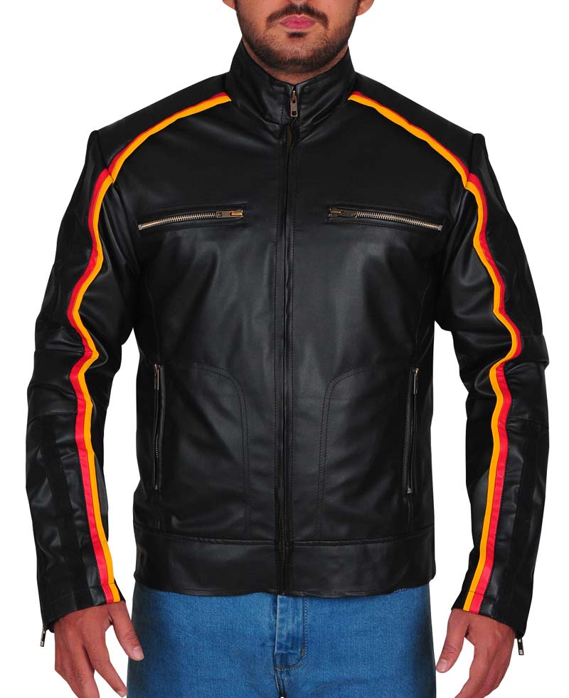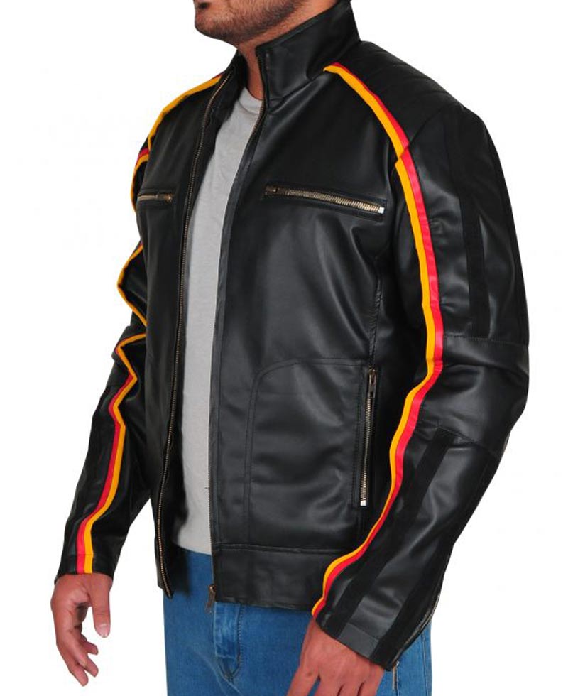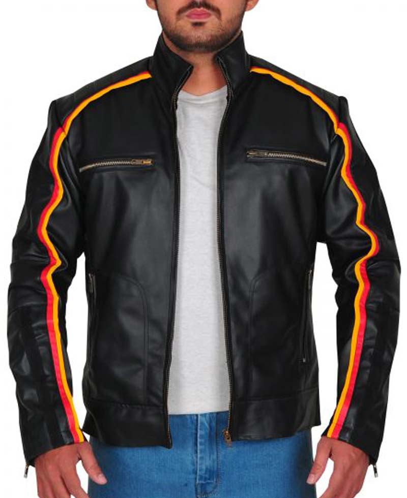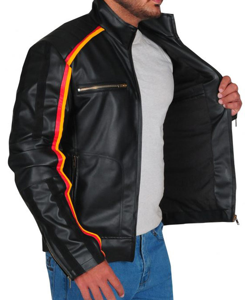 The dean ambrose black leather jacket is made from high quality faux leather and is very comfortable that you can relax all day wearing it because it has soft inner viscose lining. The dean ambrose striped jacket has a erected stand up collar with zipper cuffs on full length sleeves. This attire has a front zipper closure that fits perfectly with the style of this jacket. This jacket has two zipper front and inner pockets. On the shoulder, this jacket contains a piped design. The stupe jacket has a black color and can be worn casually or as a part wear. Order this amazing and stunning garb now and try it yourself.