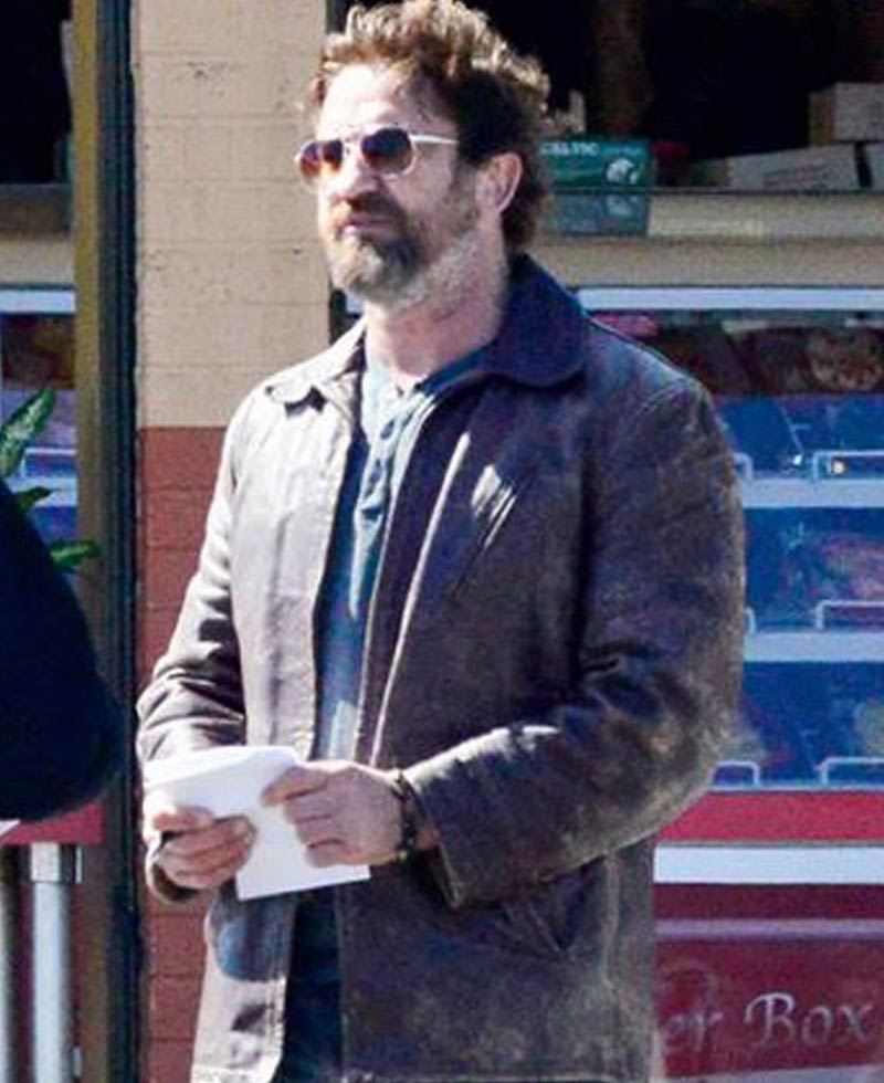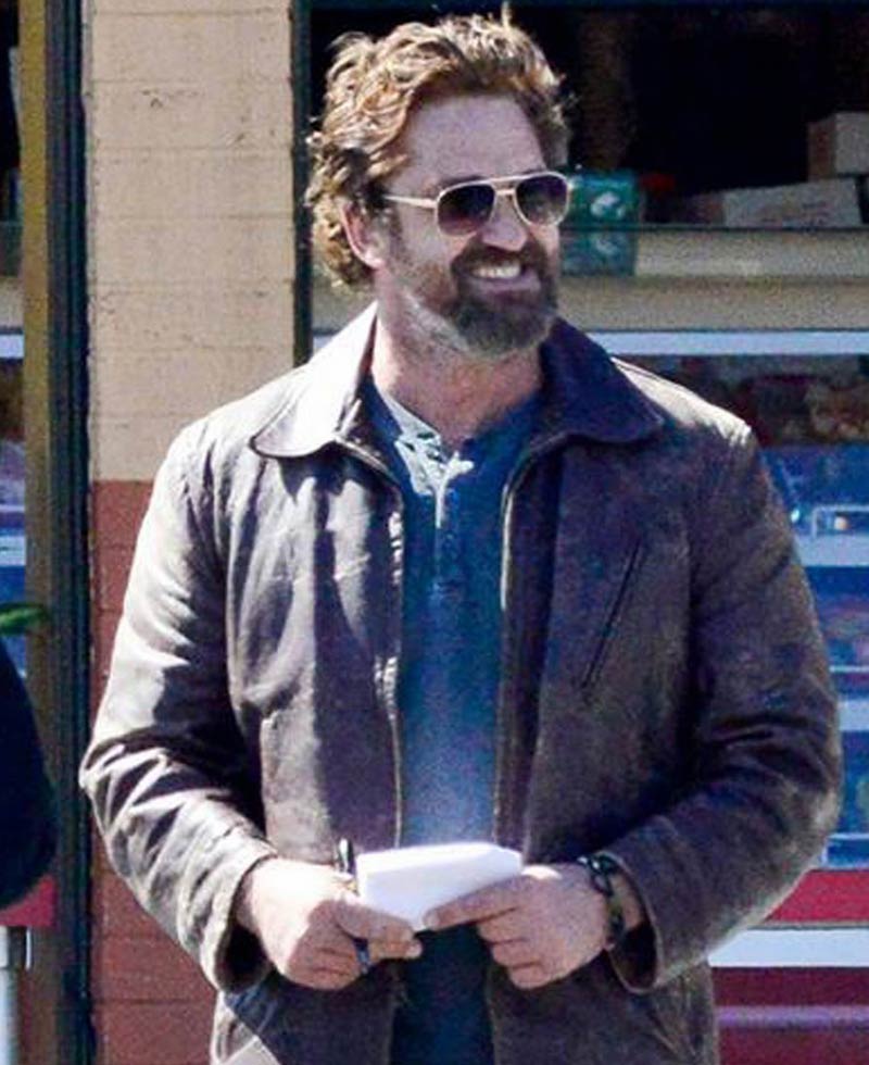 Gerard Butler Den of Thieves Nick Flanagan Waxed Brown Leather Jacket