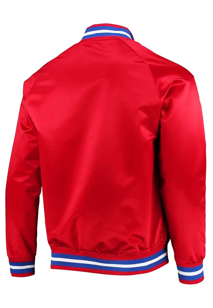 The Detroit Pistons Red Satin Jacket Has Bold and Classy Looks to Give You a Strong and Sturdy Appearance Like a Sportsman. The Jacket Has a Lovely Texture to Highlight Your Build Perfectly. The Pistons Starter Jacket Has Been Fabricated by Premium-quality Satin to Make It Lightweight and Wearable in All Season, and Its Soft Viscose Inner Makes It Comfortable and Moisture-free. The Shiny Red Color Will Look Stunning on You. The Detroit Pistons Varsity Jacket Has Been Designed by Using All Smart Features Like a Rib-knitted Stand-up Collar, Snap Tab Buttoned Closure, Rib-knitted Cuffs and Hemline, and Side Waist Pockets to Keep Your Small Accessories. The Detroit Pistons Jacket Will Really Stand You Out From the Crowd.