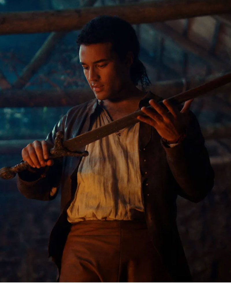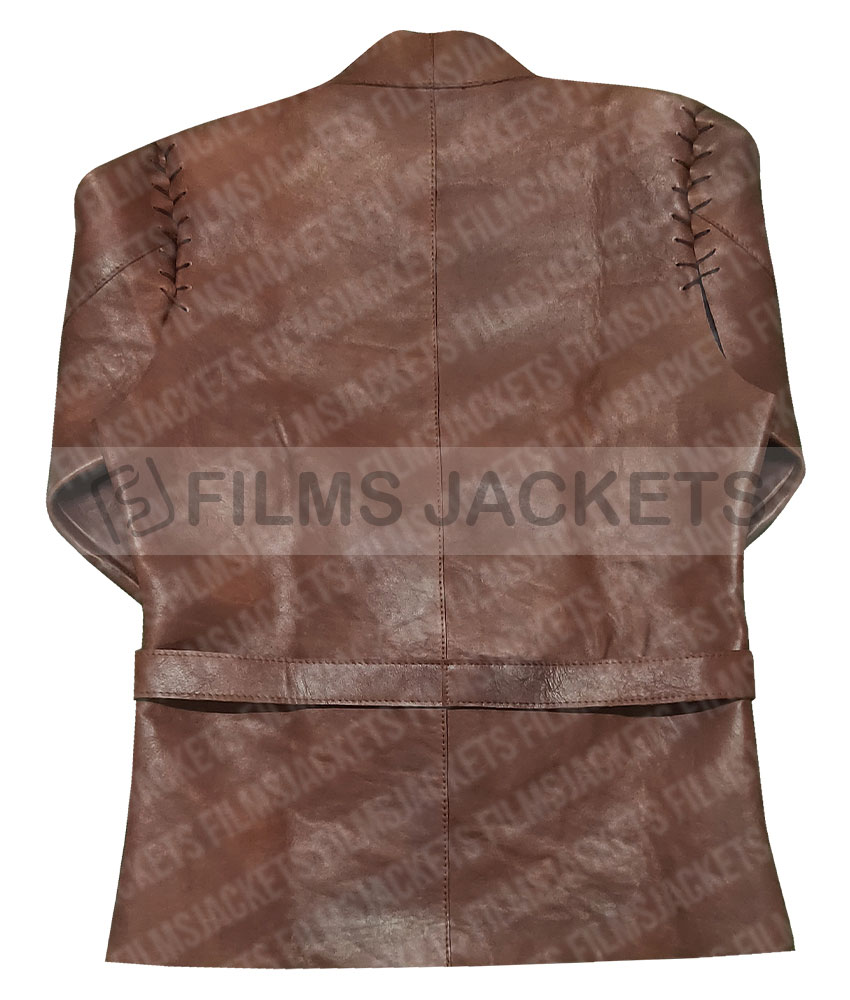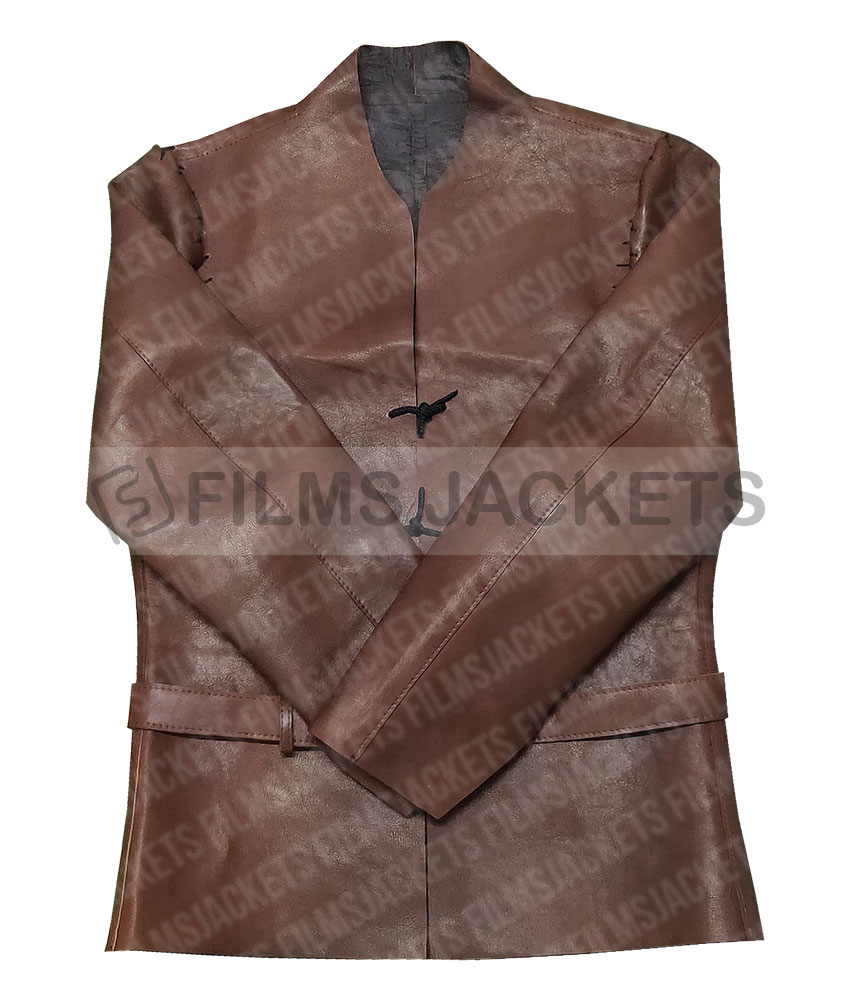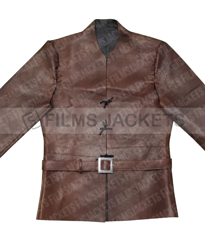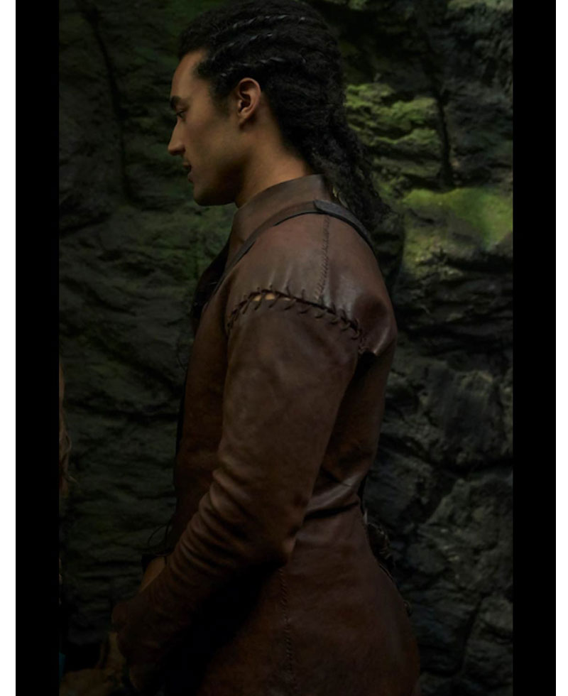 Cursed is an American popular NetFlix television drama series where this leather jacket was worn by the actor Devon Terrell when he was seen portraying the character of Arthur. The external side of this jacket is manufactured with a rich quality of genuine leather material. On the internal side of this Devon Terrell cursed leather jacket has soft and smooth viscose lining stitched that keeps you warm and comfortable. The coat comes in a soothing brown color. It gives the coat a pleasing appearance. The Devon Terrell cursed leather jacket comes with buttons on its frontal for the closure. It comes with a round neck style collar that looks attractive. The Devon Terrell cursed leather jacket has a belt around its waist for fastening. It has open hem style cuffs on full length style sleeves.