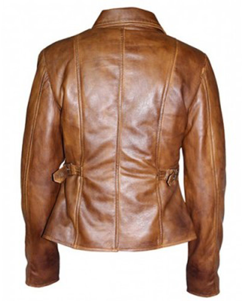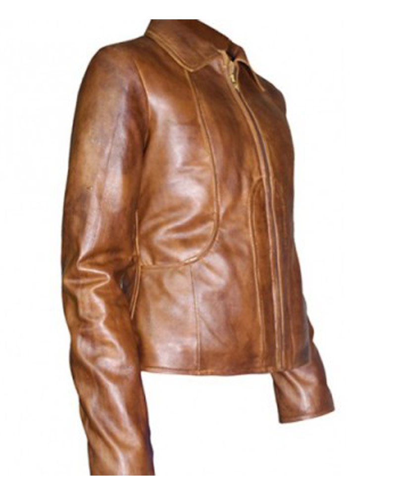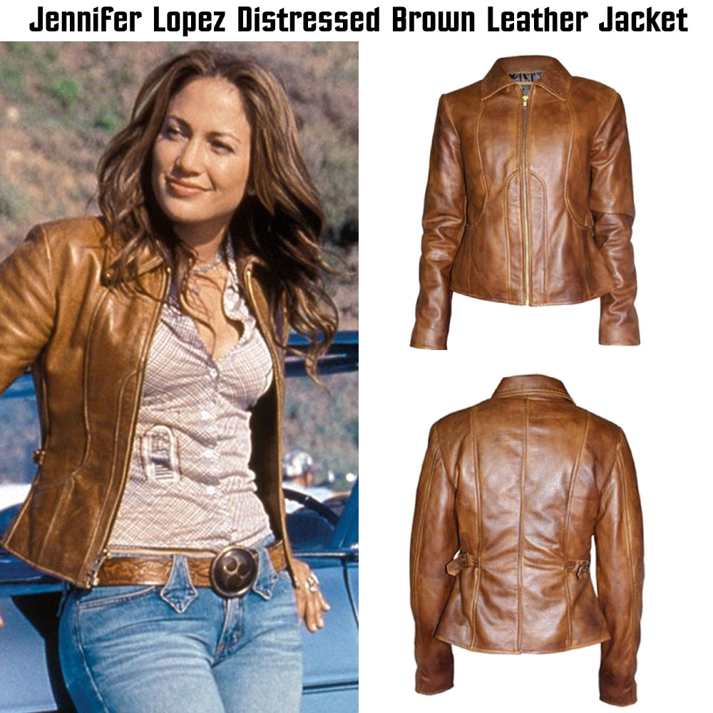 Top class leather is used in the manufacturing of Jennifer Lopez Leather Jacket. The distressed brown shade will make every lady engaging. Shirt neckline is looking charming. The outfit is an inspiration of fashion icon Jennifer Lopez who is known as actress, dancer, singer, producer, author and fashion designer. For perfect slimming image two side waist buckles are present. Long and fitting sleeves have enhanced the fantasy of Jennifer Lopez Jacket. Generally rayon soft fabric is given inside of the apparel. The stitching details are the unique designing. The sleeves are ending on open hem cuffs. Not only in social gathering but also you can add it in your daily routine. It is for everywhere and forever charm.