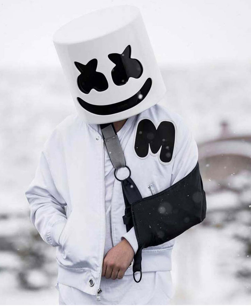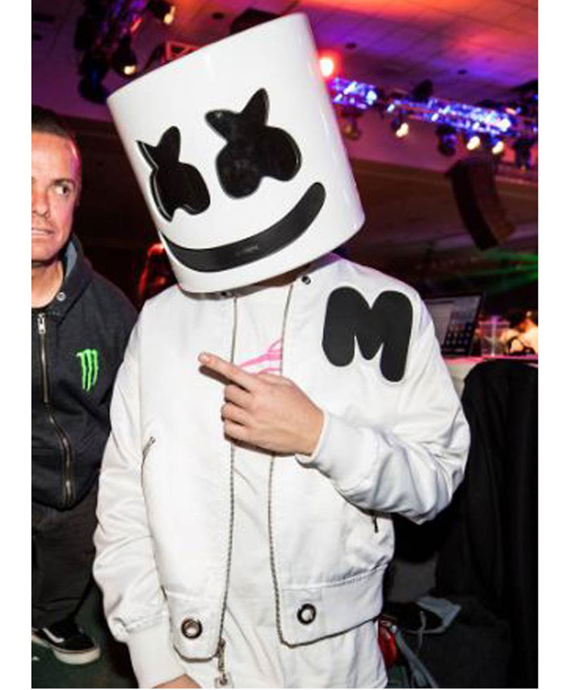 The idea of this jacket is taken from the famous American music producer and DJ known for his name Marshmello. The jacket was worn by the artist during one of his performances. The external side of this jacket is fabricated with the top quality cotton material. The internal side of this jacket is stitched with smooth and soft viscose that keeps you warm and comfortable all the time. Marshmello white jacket has a bomber look that makes the appearance of this apparel attractive. There is a ykk branded zipper on the front of this jacket for the closure. The rib-knitted cuffs look good on fitted long length sleeves. Marshmello White jacket has a rib-knitted style collar. The jacket comes with two front side waist pockets where you can secure stuff. Moreover, the jacket has a rib-knitted hemline to get a fitted look.