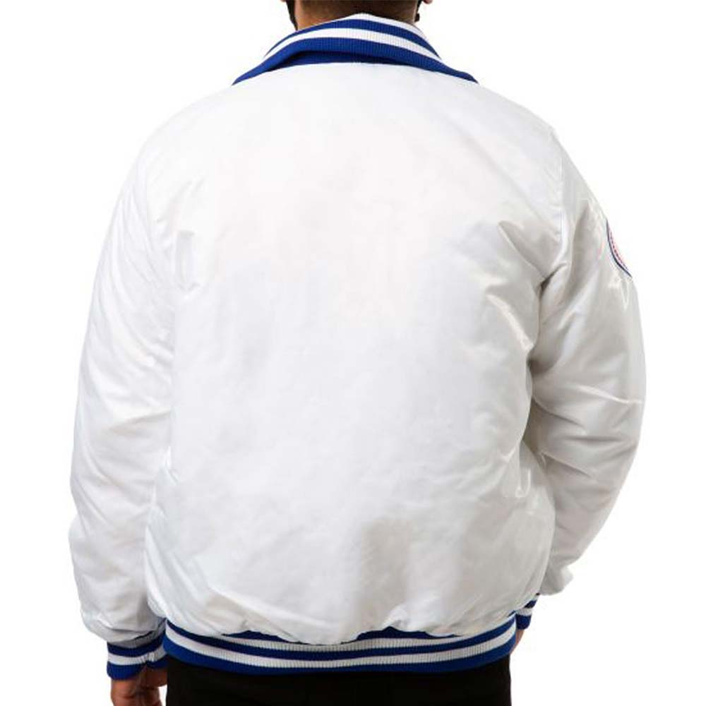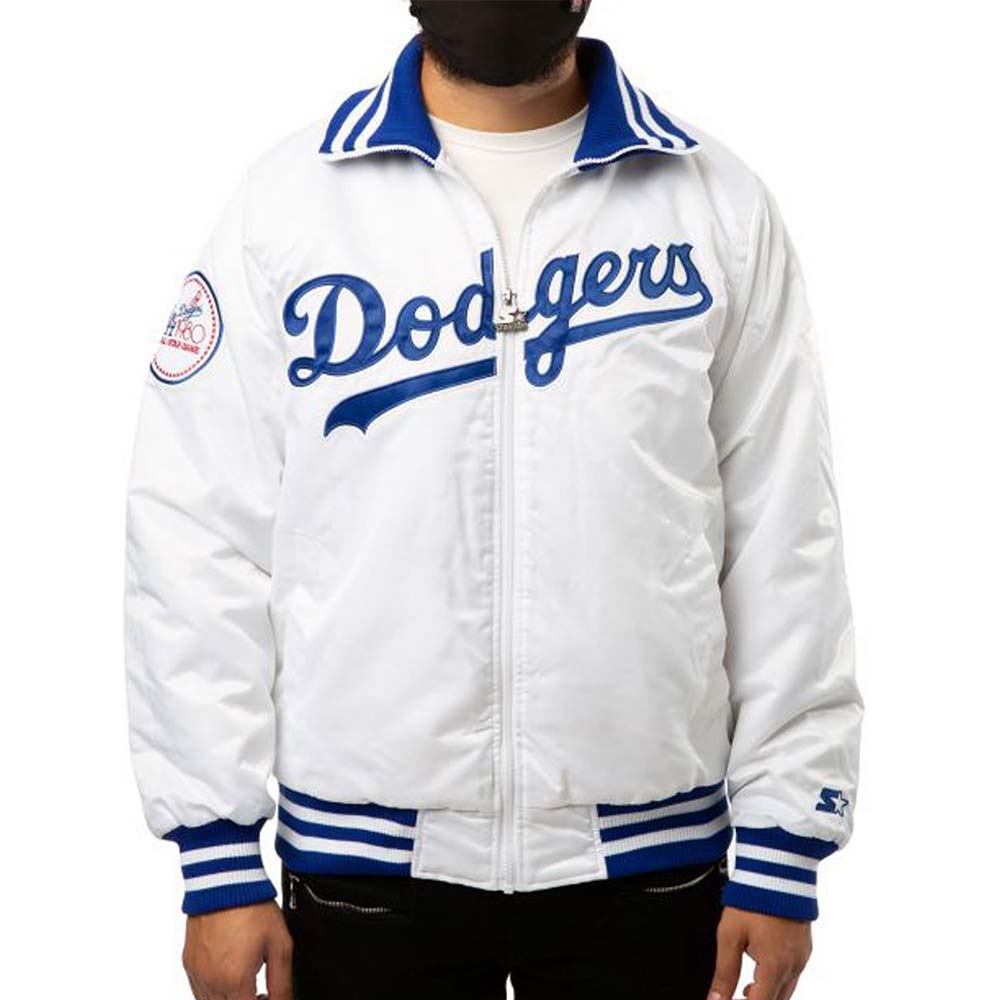 The Dodgers Los Angeles 1980 Jacket is the Smartest Way to Shower Love for Your Favorite Team, It Will Also Add a Touch of Elegance to Your Outfit. Its Premium Quality Satin Fabrication Makes It Light Weighted and Wearable in All Seasons Furthermore Its Soft Viscose Inner Makes It Restful and Comfortable. The White Color of the Jacket Makes It Too Attractive to Wear. The Dodgers Los Angeles 1980 Varsity Jacket Has Been Styled by Using Attributes Like a Rib-knitted Turned-down Collar, Smooth Zippered Closure, Rib-knitted Cuffs, and Hemline and Side Waist Pockets. The Los Angeles 1980 Varsity Jacket is a Statement Piece That Will Elevate Your Entire Ensemble.