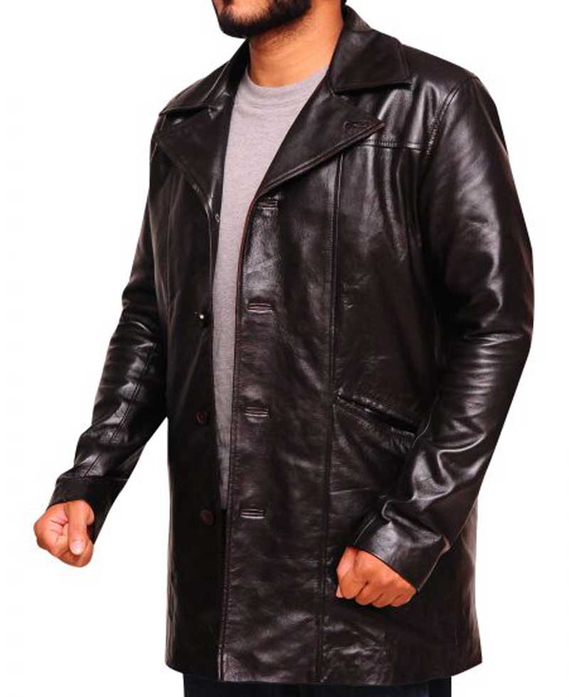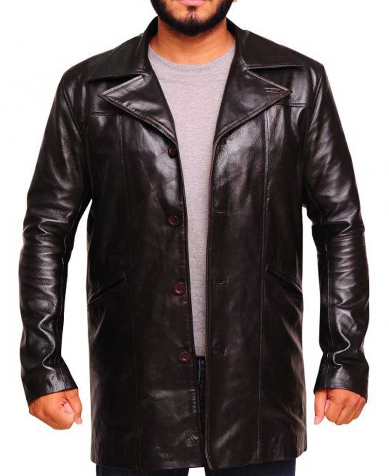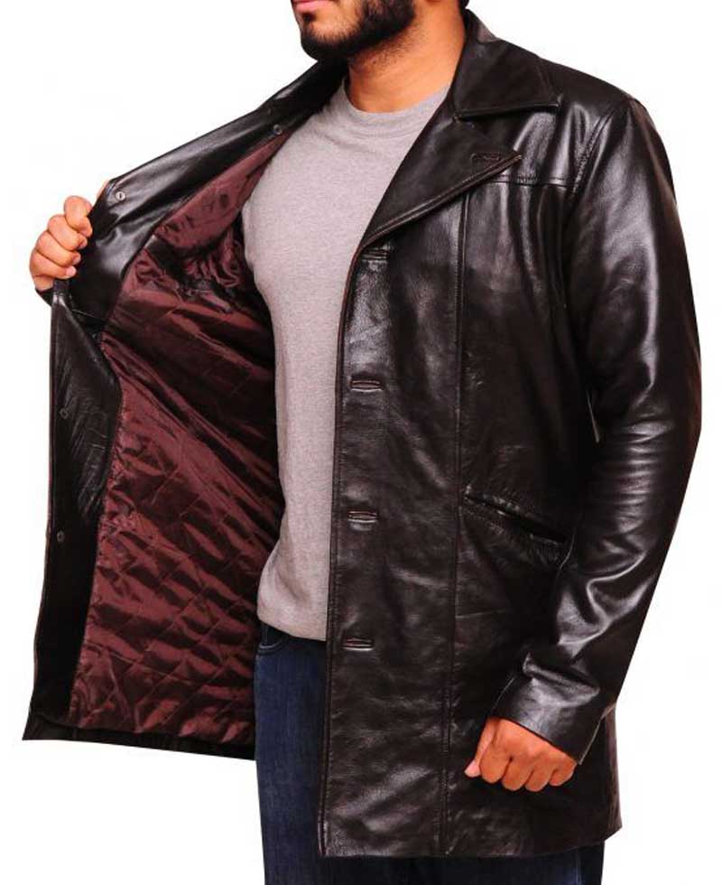 jimmy mcnulty leather coat is fabricated from best, high and reliable quality material. The material used in the manufacturing of this coat is genuine leather. The inner soft viscose lining surely makes this garb comfortable enough to carry all day long. This garb will no doubt shield you against cold weather. You will love the texture and style of this garb. the wire dominic west coat a lapel style collar. This leather coat has full length sleeves with open hem cuffs. The front buttoned closure of this leather coat is making this coat looking even more attractive. This coat has front side waist pockets in which you can secure your stuff. You can now get this leather coat here in brown color. You will not regret once after buying this cloth. Place your order to proceed further.