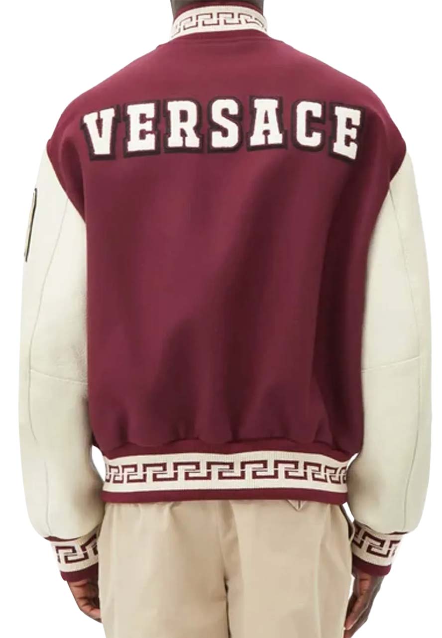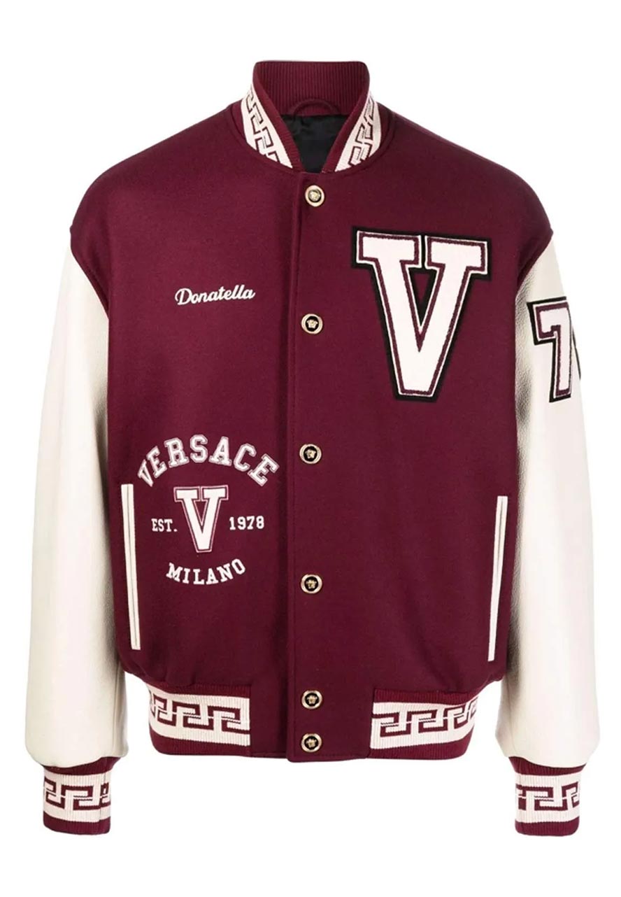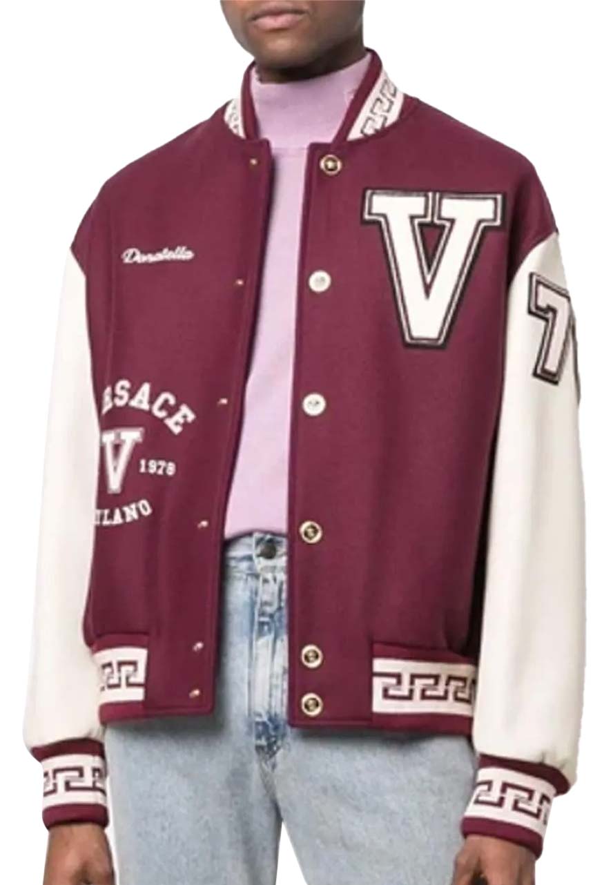 If You Have a Great Eye for Fashion, Then the Donatella Versace Varsity Jacket Will Be the First Choice of Yours. It Will Not Only Elevate Your Entire Looks but Also Get You About Iconic Style Creator. The Fashion-forward Versace Letterman Jacket Has Been Fabricated by Premium-quality Wool to Make It Warm and Ageless, While Its Soft Viscose Inner Makes It Comfortable and Moisture-free. The Combination of Maroon and White Colors Will Go With Any Outfit. The Donatella Versace Jacket Has Been Designed by Using All Smart Features Like a Rib-knitted Stand-up Collar, Snap Tab Buttoned Closure, Rib-knitted Cuffs and Hemline, and Side Waist Pockets to Keep Your Small Accessories. The Versace Varsity Jacket Will Add Such an Elegant Touch to Your Outfit.