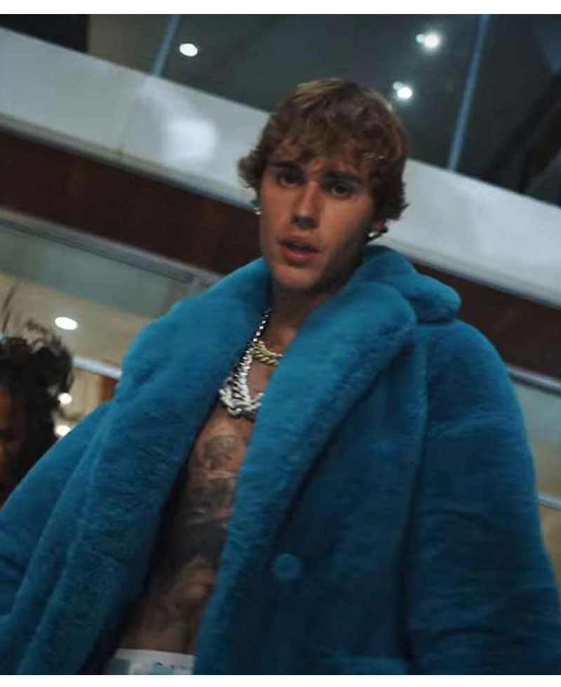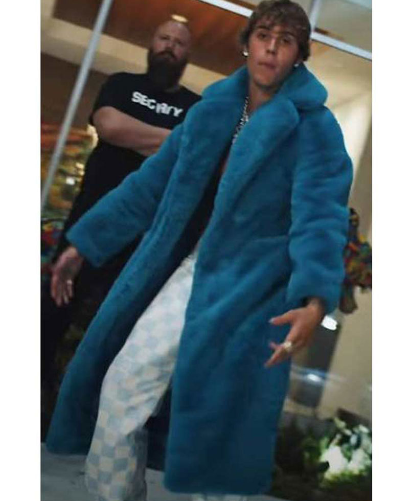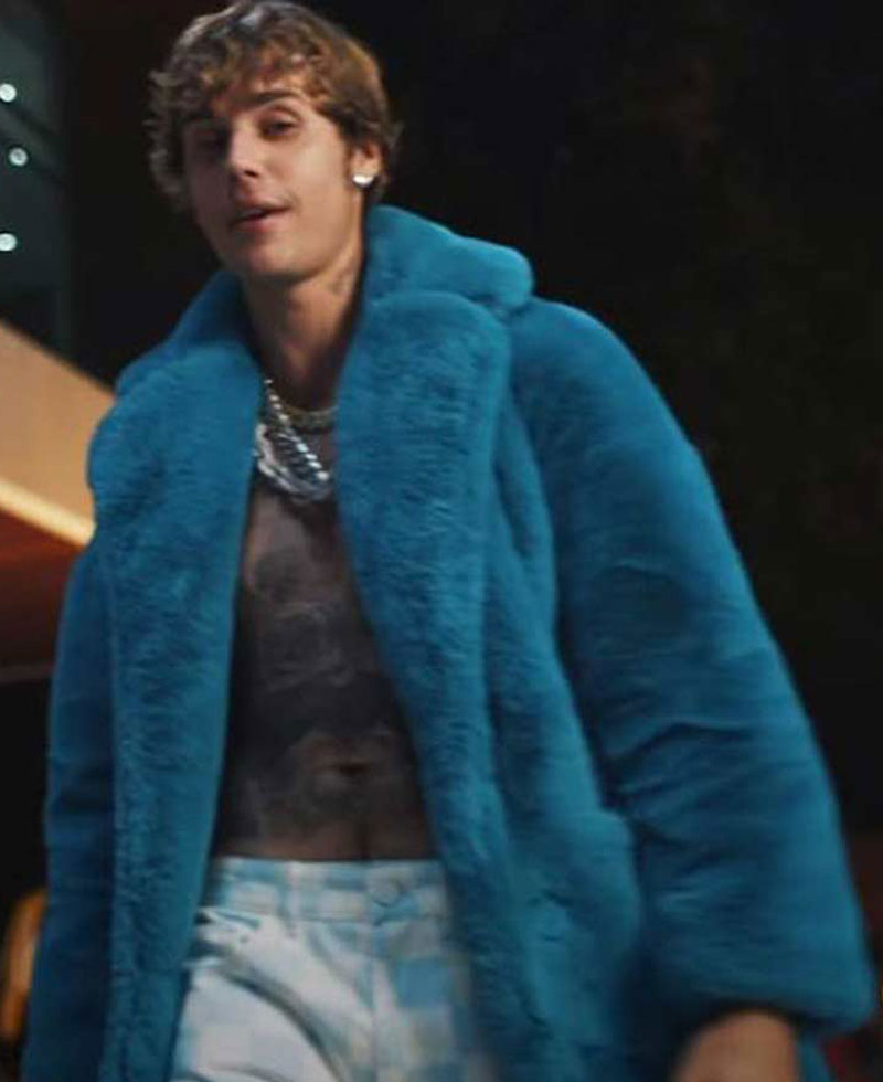 The idea of this coat is taken from DJ Khaled’s latest music video called Popstar starring Justin Bieber. The coat was worn by Justin and he totally rocked the bad guy look in it. The coat is fabricated with fur material. It has soft viscose stitching on the internal side of the coat that keeps you warm and comfortable all the time. The popstar fur coat comes in blue color. DJ Khaled ft. drake popstar Justin Bieber coat has buttons on its front side for the closure. The wide lapel style of this collar makes the apparel more appealing to wear. DJ Khaled ft. drake popstar Justin Bieber coat has open hem style cuffs on full-length style sleeves. There are two front pockets as well on this Justin Bieber blue fur coat. This coat is the exact replica of the original one.