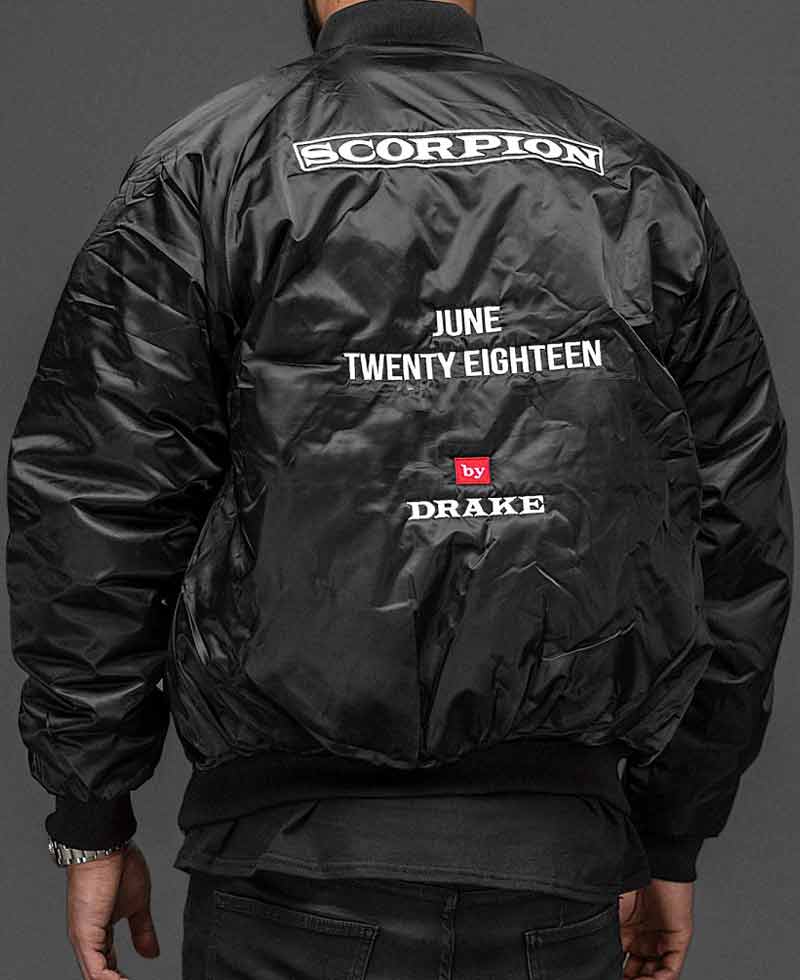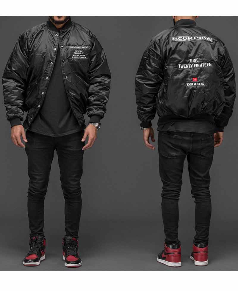 Drake scorpion jacket is made from the high-quality satin material. The material quality is amazing and it is very comfortable to wear. You will feel comfortable because it has an inner soft viscose lining. It will keep you warm and will surely protect you from cold climates. drake bomber jacket has an attractive rib knitted style collar. This jacket has full-length sleeves on rib knitted cuffs. This jacket has front full buttoned style that fits in perfectly with the style of this jacket. You will look extremely outstanding in this jacket and you can wear this jacket just casually. This jacket has a rib knitted waist hemline as well. This jacket has front side waist pockets.v June twenty eighteen jacket has a black color which is extremely attractive and appealing. Order this amazing jacket now and get your hands on this jacket.