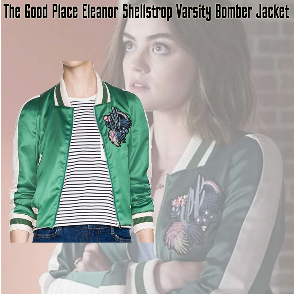 Eleanor Shellstrop The Good Place TV Series Kristen Bell Varsity Bomber Green Jacket