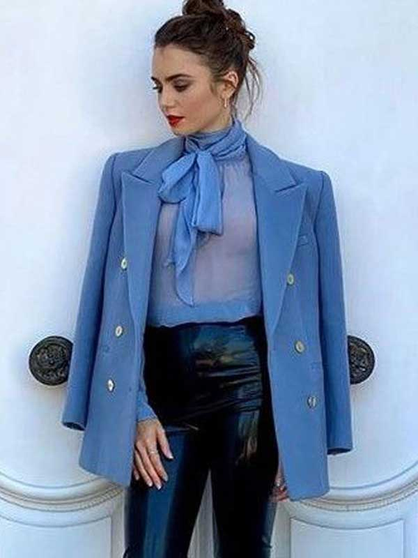 If you want to wear highly glamorous looks like Lily Collins, then you must wear Emily in Paris s2 lily collins blue peacoat. The fashion-forward peacoat is fabricated by premium quality wool-blend fabric and fully lined with skin-friendly viscose fabric to keep you moisture-free. The charming blue color will increase your beauty. The lily collins coat is modishly tailored by using attributes like wide lapel style collar, buttoned closure, and side waist pockets are nice to store your small belongings. The charming blue color, sturdy features, and roomy style will give you a cool, smart, and exquisite look either you are heading out for party, official events, or formal events, the emily in paris coat will leave you with highly attractive look. Now dress yourself to kill.