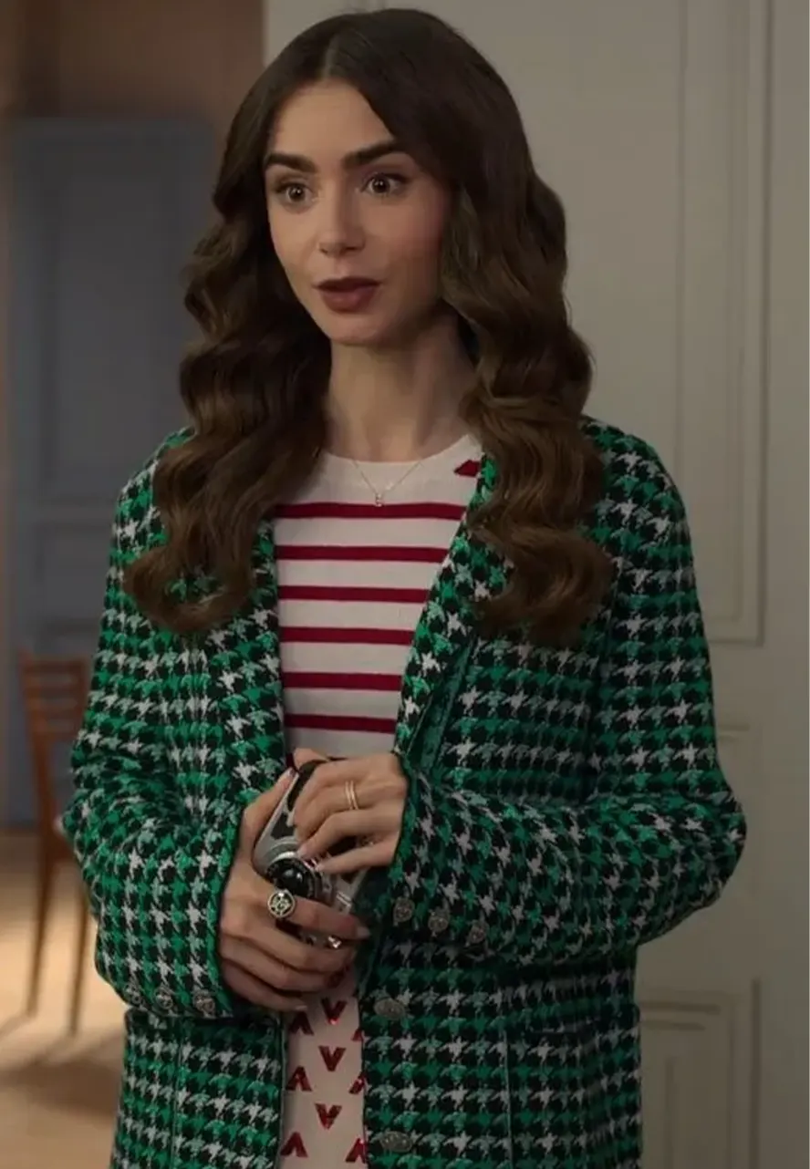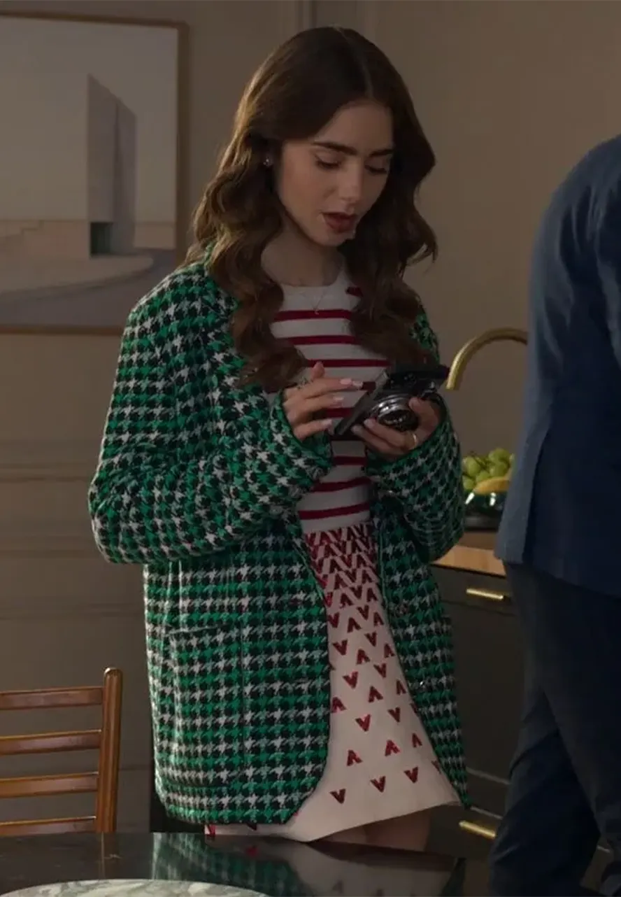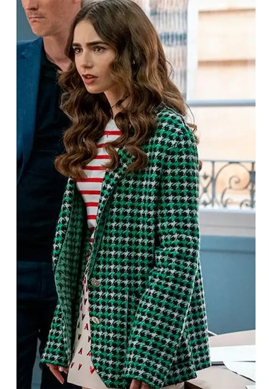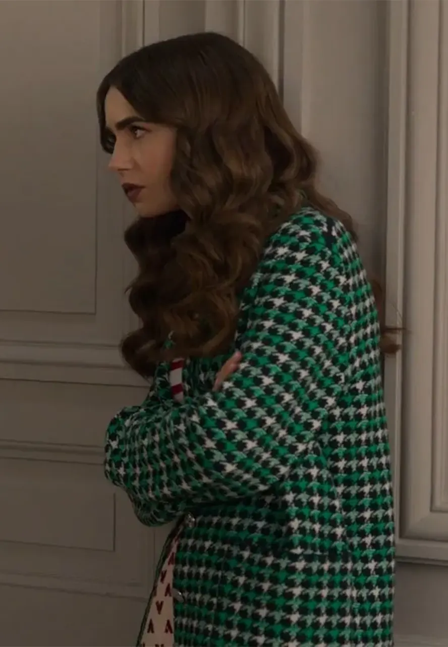 Emily In Paris S2 Lily Collins Emily Cooper Green Houndstooth Blazer