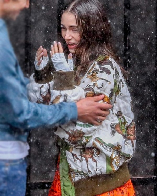 If you are invited to attend any party or event, then you must dress yourself up nicely, so without wasting a minute, shop the Emily in Paris s2 lily collins satin jacket. The lily collins jacket is fabricated by premium quality satin fabric and inwardly stitched with soft viscose fabric to make you feel comfortable and moisture-free. The white color with print will look unique. The Emily in Paris s2 Emily cooper lily collins satin jacket is having remarkable features like a rib-knitted collar, smooth zippered closure, rib-knitted cuffs and hemline, and side waist pockets are nice to carry your stuff. The emily in paris jackets is a trans-season piece, is your go-to for layering both during this week and on weekend.