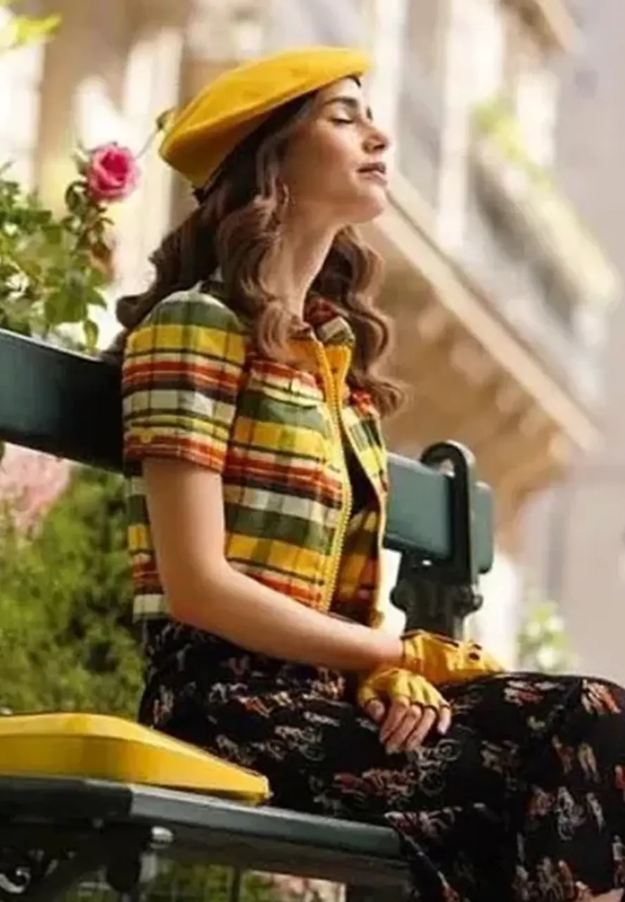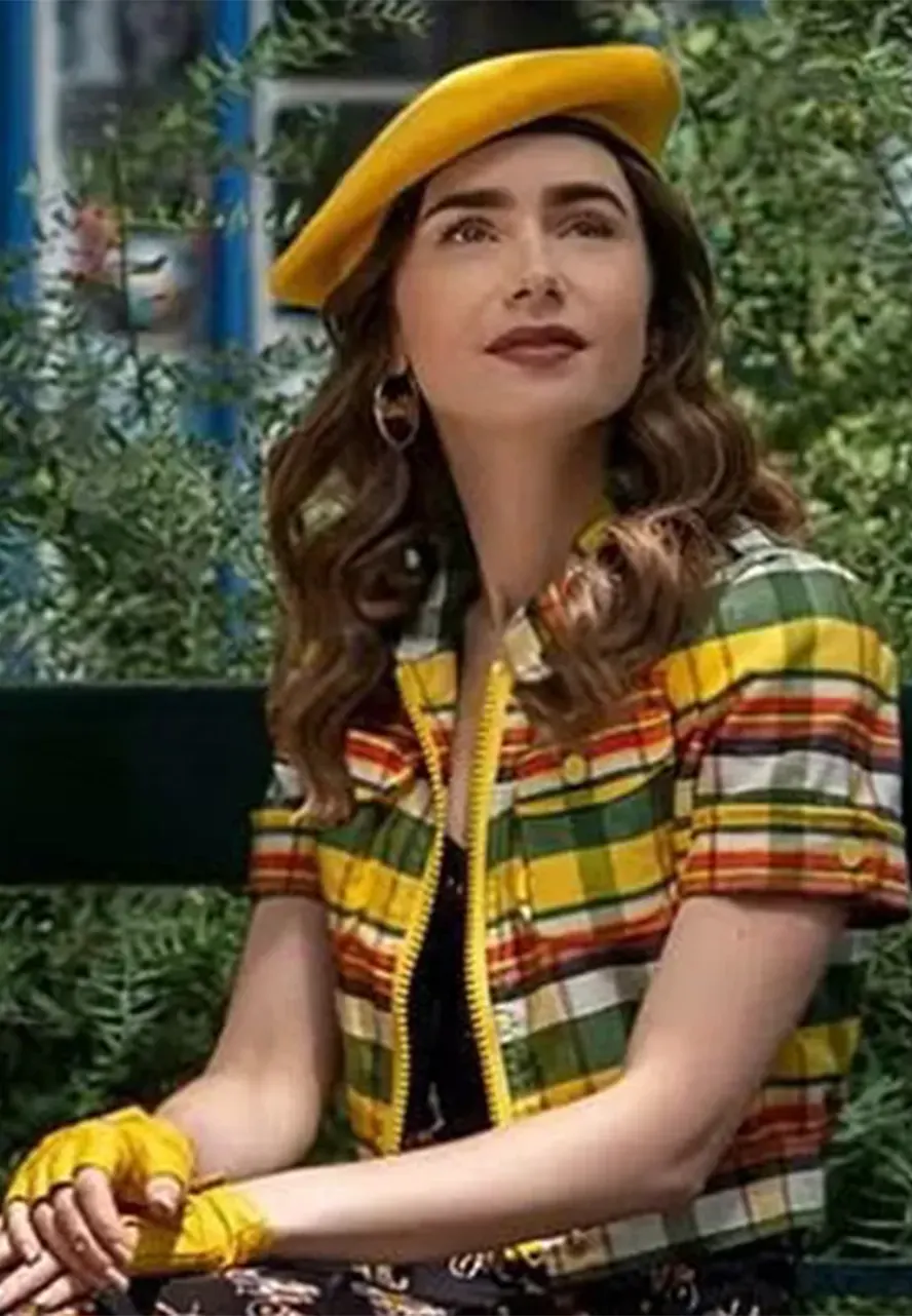 This is time to build your own versatile and iconic wardrobe with Emily in Paris s2 lily collins yellow jacket. The lily collins jacket is fabricated by premium quality cotton and inwardly stitched by smooth viscose fabric to make you feel moisture-free for a long. Its yellow color in checkered print makes it different from other jackets. The Emily in Paris s2 Emily cooper lily collins’s yellow cropped jacket is having great features like shirt style collar, smooth zippered closure, two chests flapped, and two inside pockets that are nice to storage your needs. Now enjoy your dreamy looks while wearing yellow cropped jacket.