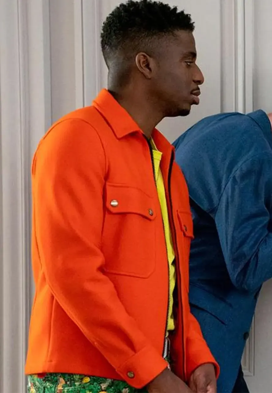 Classic and timeless, the Emily in Paris s2 Samuel Arnold orange jacket is a wardrobe staple and a lifetime investment. The samuel arnold jacket is fabricated by premium quality wool and fully lined by smooth viscose fabric to make you feel comfortable and moisture-free. The bright orange color will give you unique looks. The Emily in Paris s2 Samuel Arnold Julien orange wool jacket is tailored modishly by using features like shirt style collar, smooth zippered closure, chest flapped pockets that will give you a high fashioned look, and buttoned cuffs. The julian jacket has investment-worthy looks that will keep you warm, dry, and stylish. Now be the fashion icon!