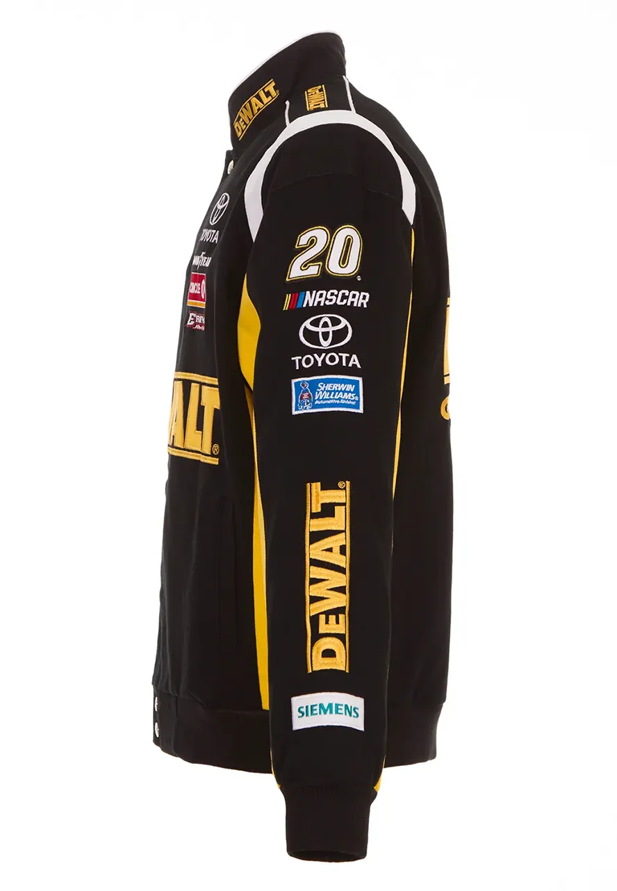 Now You Can Ride With Confidence And Look Great While Wearing The High-end Erik Jones Dewalt Nascar Jacket Which Seamlessly Blends Style And Functionality. The Premium-quality Cotton Makes It Lightweight And Wearable In All Seasons, While Its Soft Viscose Inner Makes It Comfortable And Sweat-free. The Strong Black Color Will Look Stunning On You. The Dewalt Nascar Cotton Jacket Has Been Designed To Give You A Heroic Look By Using All Remarkable Features Like A Stand-up Collar, Snap Tab Buttoned Closure, Rib-knitted Cuffs And Hemline, And Side Waist Pockets To Make It More Professional. The Dewalt Nascar Jacket Will Give You Both Fashion And Functionality And Make An Attractive Pair With Tight Jeans And Your Favorite Tee.