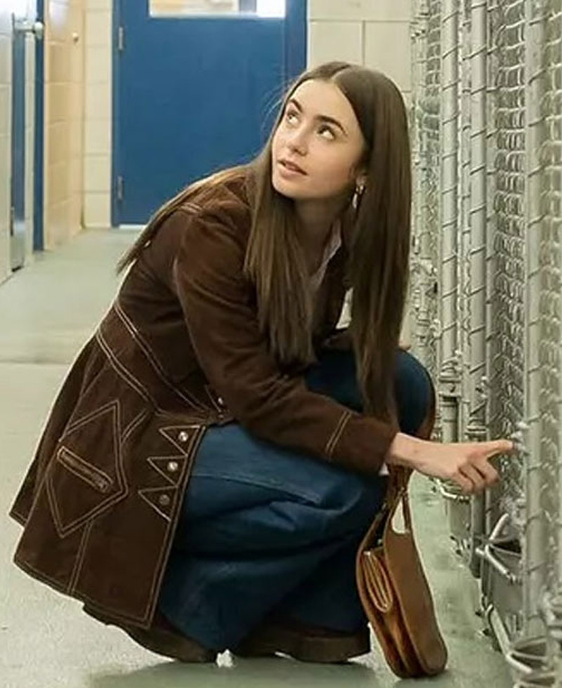 In the popular american crime thriller movie titled as Extremely Wicked Shockingly Evil and Vile, the actress Lilly Collins wore this leather coat as the character of Liz Kendall. This coat is manufactured from high quality suede leather material. It has internal lining of soft and comfortable viscose attached. Its brown color looks so appealing. The Liz Kendall coat has front buttoned style closure that matches perfectly with the style of this coat. This coat has two front side waist pockets where you can secure stuff. It comes with a notch lapel designed mesmerizing and stylish collar. The coat can be worn for any outdoor activity whether it is formal or casual.