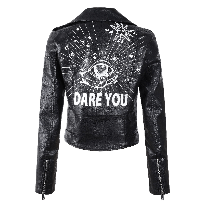 Be the first to review “Eye Dare You Black Leather Jacket”