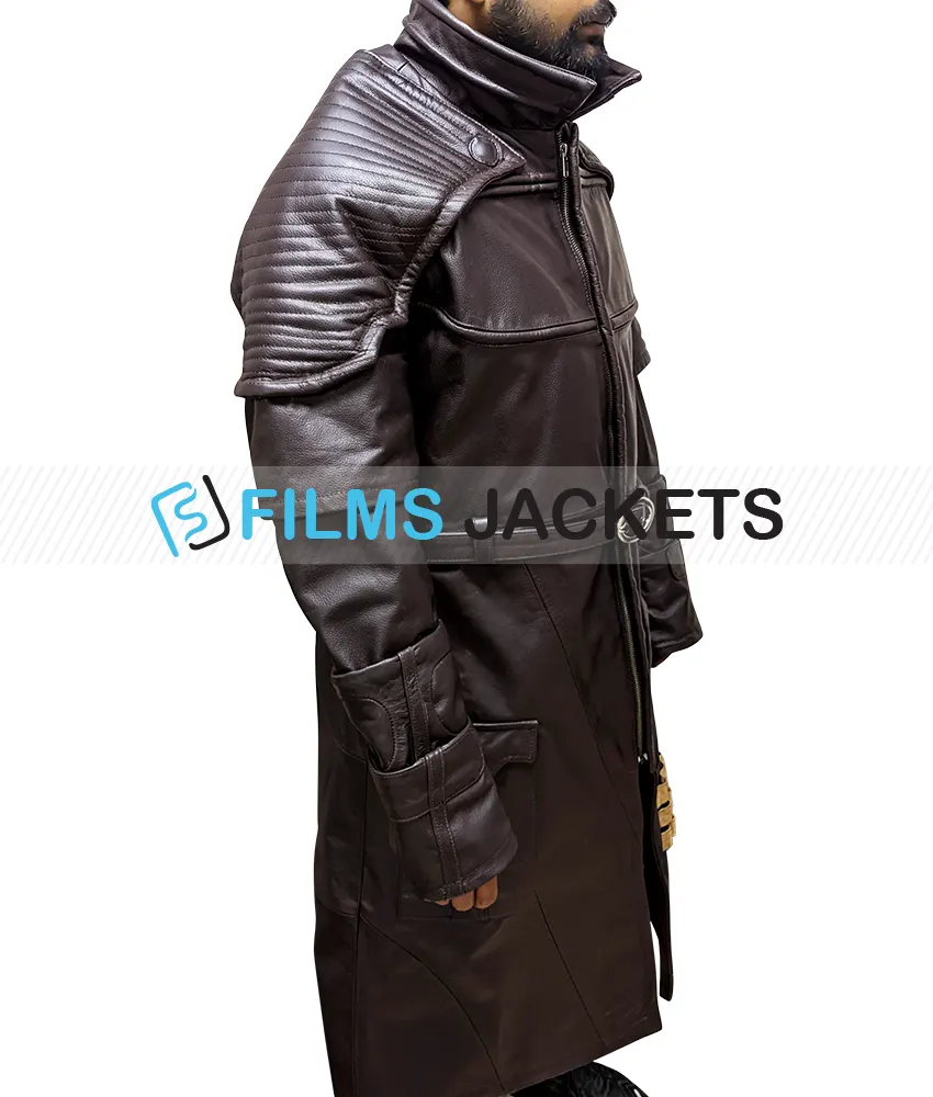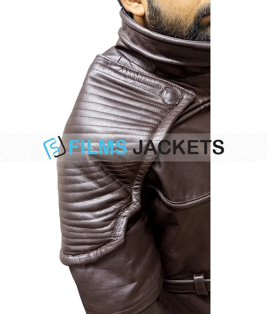 Fallout 4 x6 88 jacket is inspired from video game fallout 4. The character x6 88 wore this outwear and get appreciation from fans. It has been manufactured from high quality genuine leather with viscose lining interior support. Available in brown color. The outfit has round collar along zip terminating front. Padded design at shoulder makes it bravo like champions. It has adjustable buckle belt at waist gives stunning look. The sleeves are full with embossed designing. X6 88 coat has two big flap button pockets on the lower part of the coat.