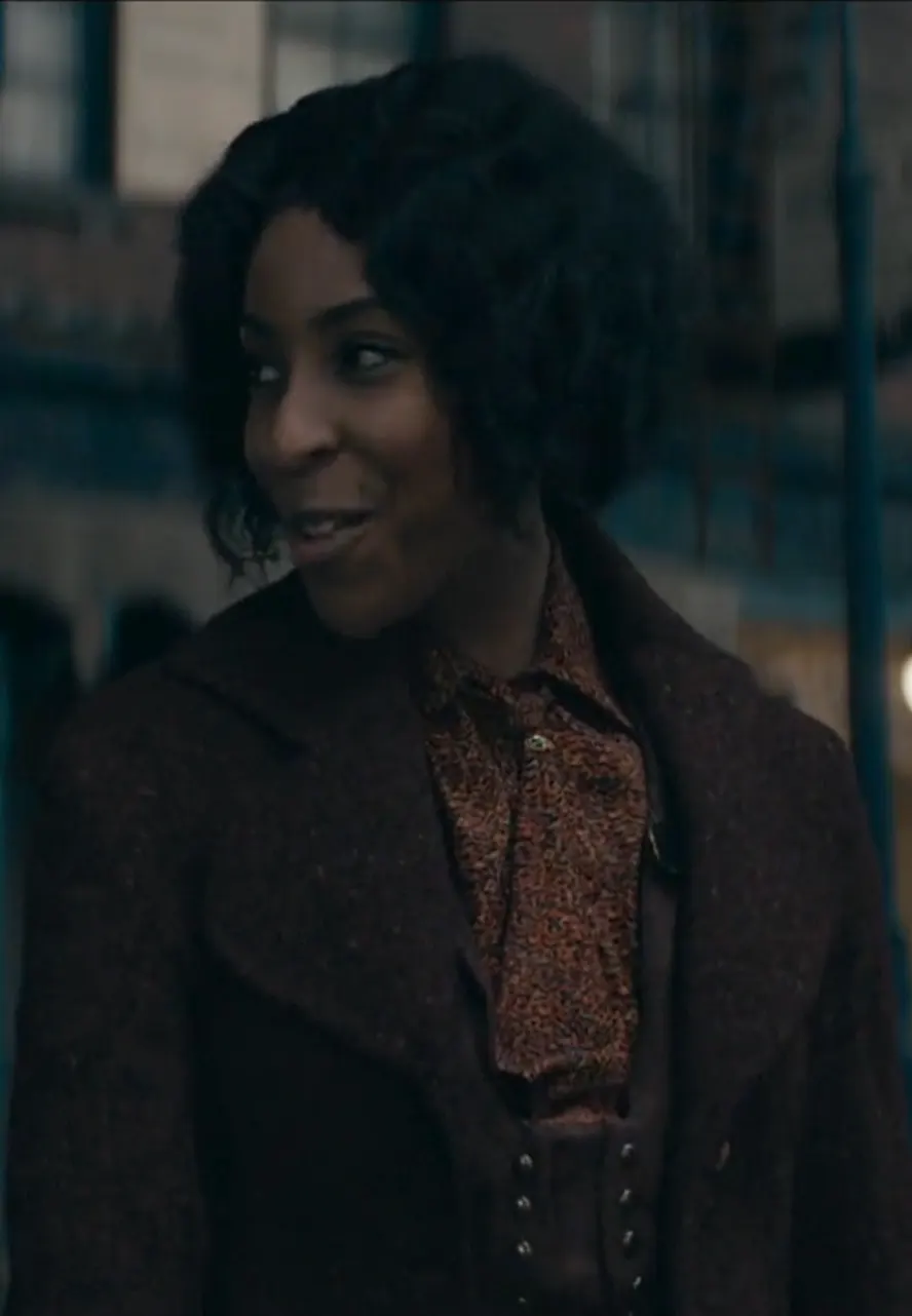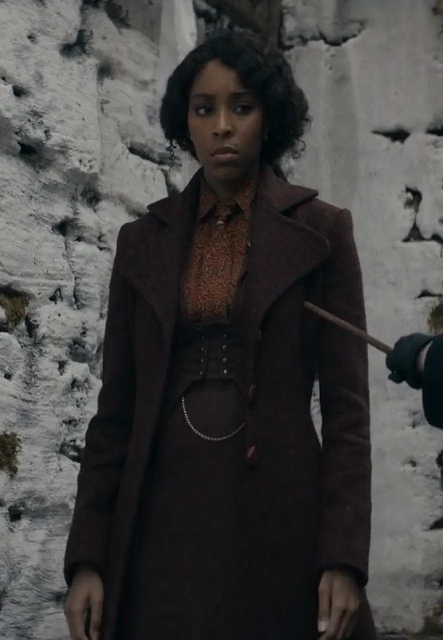 This Jessica Williams coat is inspired by Jessica Williams as Eulalie “Lally” Hicks in Fantastic Beasts: The Secrets of Dumbledore. As a powerful and magical character, she exudes elegance, strength, and confidence, as seen in her wardrobe.