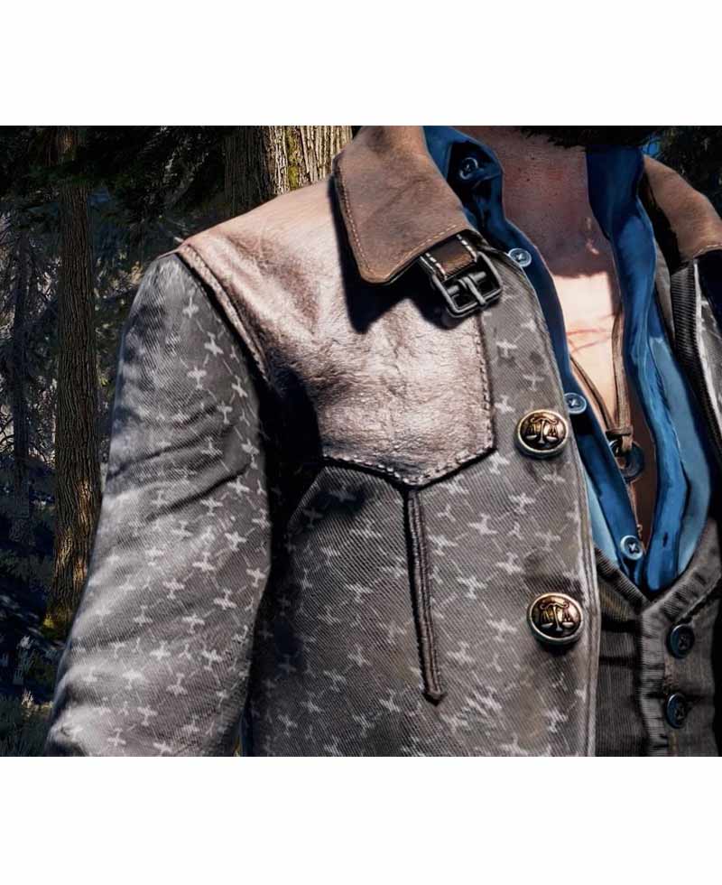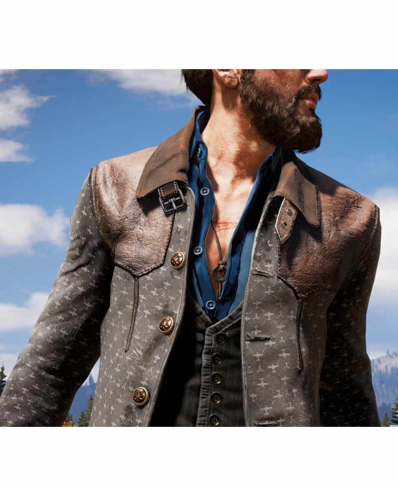 Far cry 5 john seed coat was worn by the character john seed in the video game far cry part 5. The character was soon loved by the audience and so do his costume. The leather has been manufactured by using cotton and genuine leather material. The internal soft viscose lining makes it possible for us to keep you warm and comfortable. The john seed coat contains front buttoned closure and a remarkable shirt style collar. The coat is long in length which adds extra glamour to its charm. The far cry 5 coat comes in grey and brown color. Full-length sleeves are designed on strapped cuffs. There is a belt around the collar with leather patch on the shoulders.