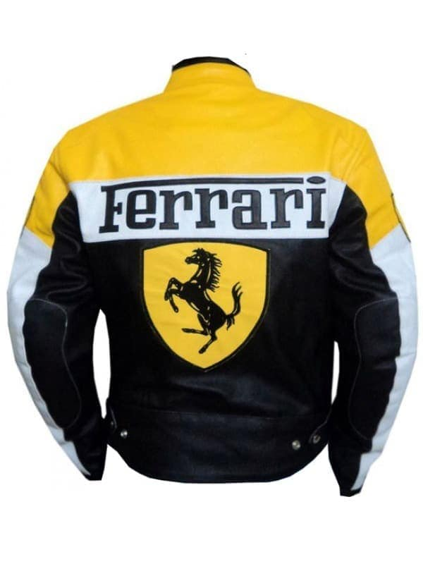 If you want to be a center of attraction and want everyone will remember you for your dressing style, then you must shop and wear the Ferrari leather motorcycle yellow jacket. The top-quality real and faux leather makes it warm and the soft viscose inner makes it too comfortable to wear for a long. The combination of black, yellow, and white colors makes it extremely good to wear. The Ferrari leather motorcycle yellow leather jacket has been designed by using features like a stand-up collar, smooth zippered closure, side waist pockets, and zippered cuffs. It is time to come up with new looks to make your pals fans of your clothing style just by wearing the Ferrari leather motorcycle yellow leather jacket.