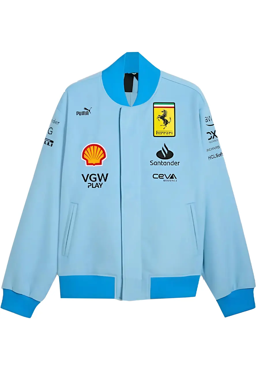 If You Want Modern and Fresh Dressing Style While Adding a Touch of Vintage Charm Into Your Overall Look, Then You Must Shop and Wear the Ferrari Miami Wool Varsity Jacket. This Jacket is the Perfect Layering for Winter. The Ferrari Miami Jacket Has Been Fabricated by Premium-quality Wool to Make It Warm and Ageless, While Its Soft Viscose Inner Makes It Comfortable and Moisture-free. The Elegant Blue Color Will Look Smart on You. The Ferrari Miami Varsity Jacket Has Been Tailored With Rib-knitted Stand-up Collar, Snap Tab With Smooth Zippered Closure, Rib-knitted Cuffs and Hemline, Two Side Waist and Inner Pockets. The Wool Blue Varsity Jacket Will Give You Catchy Sporty Looks.