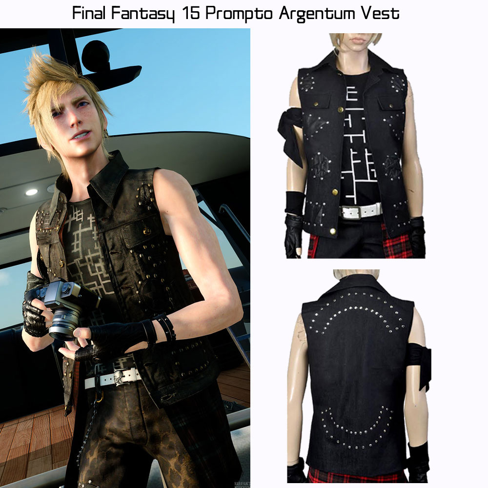 Like movies video games are also the source of fashionable attires like Prompto Vest. High quality cotton fabric is used in the formation of outer shell of the outfit. Comfortable rayon inner lining is given for high relaxation. The inspiration of the attire is obtained from a famous video game named as “Final Fantasy XV”. Shirt collar style is given in the Prompto Argentum Vest. Two flapped pockets are present on the chest. The front shutting is concerned with metal buttons. Two side waist pockets are also added in it. The front part is embellished with metal studs and it is forming classy look. It is perfect apparel for ladies who want to make their appearance unforgettable. Prompto Argentum Final Fantasy XV Vest has pattern on back side with metal studs.