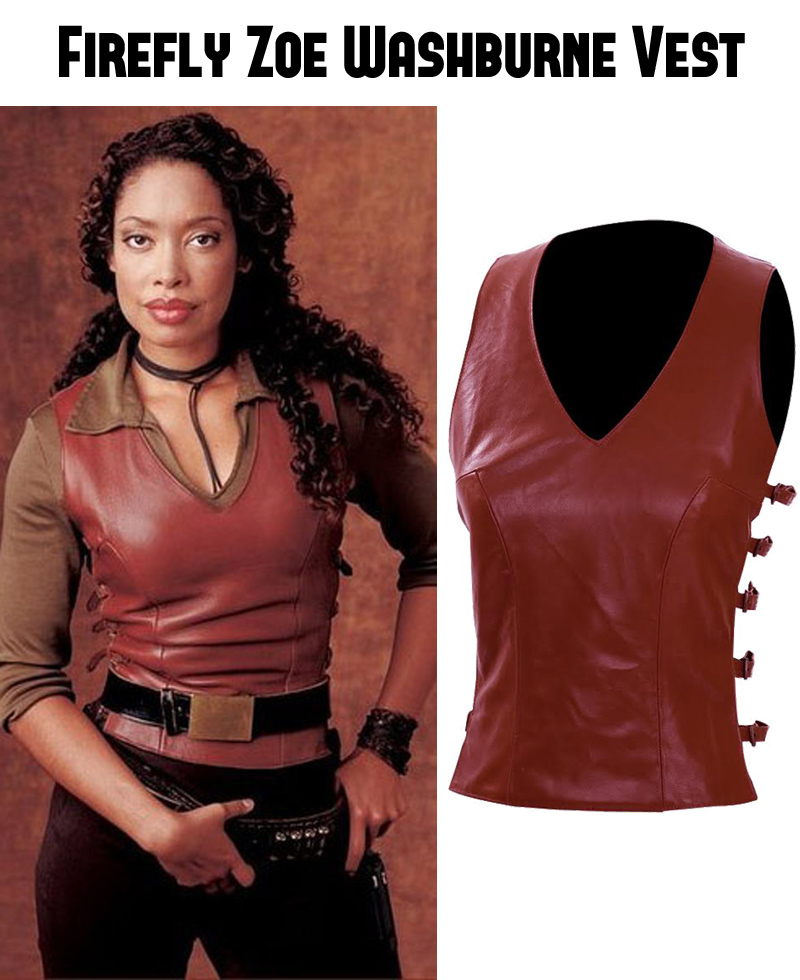 The Zoe Washburne Vest is a very astounding wearing that makes your personality dynamic. The inspiration of this eye-catching outfit is taken from the television series named as “Firefly”. The Zoe Washburne Vest is worn by the great celebrity Gina Torres as Zoe Washburne. She surprised viewers by her performance and appearance. High quality faux leather or genuine leather is used in the manufacturing of the Firefly Vest. The simple but gorgeous look of the vest enforces you to buy and wear. The internal viscose lining gives you comfortable feeling. Beautiful brown is shade of the super appealing Firefly Vest. You will enjoy V shape neckline on the front side. There is no front closure; the brass buckles at both sides are given for closure. The premium stitching is the important feature of the Firefly Zoe Washburne Vest. You can wear it with any dress because it suits on all kinds of outfits.