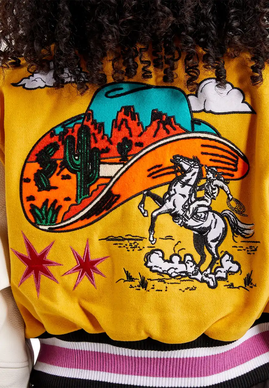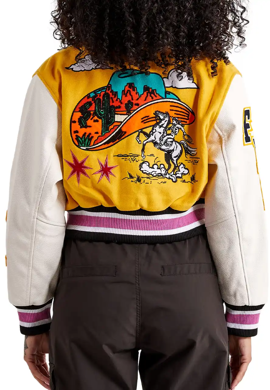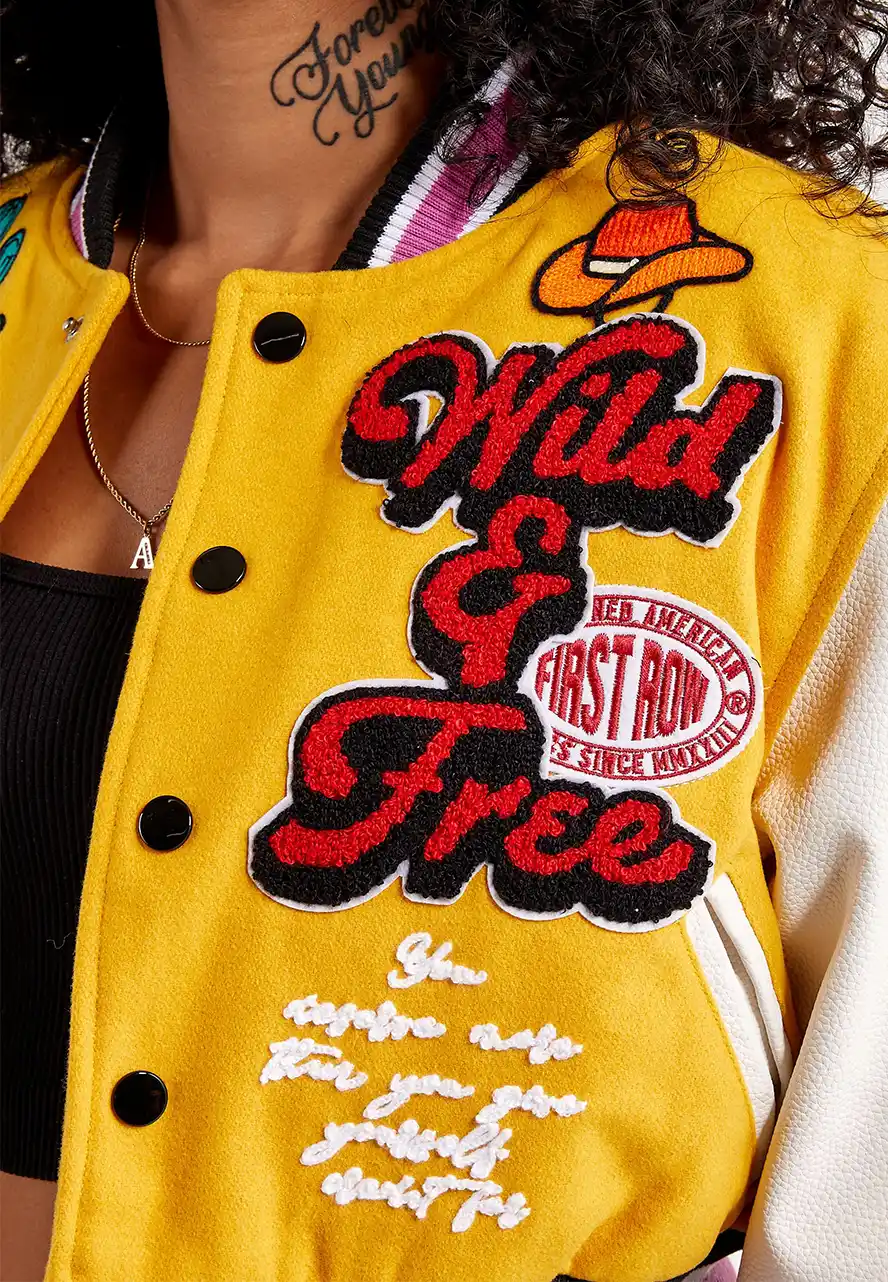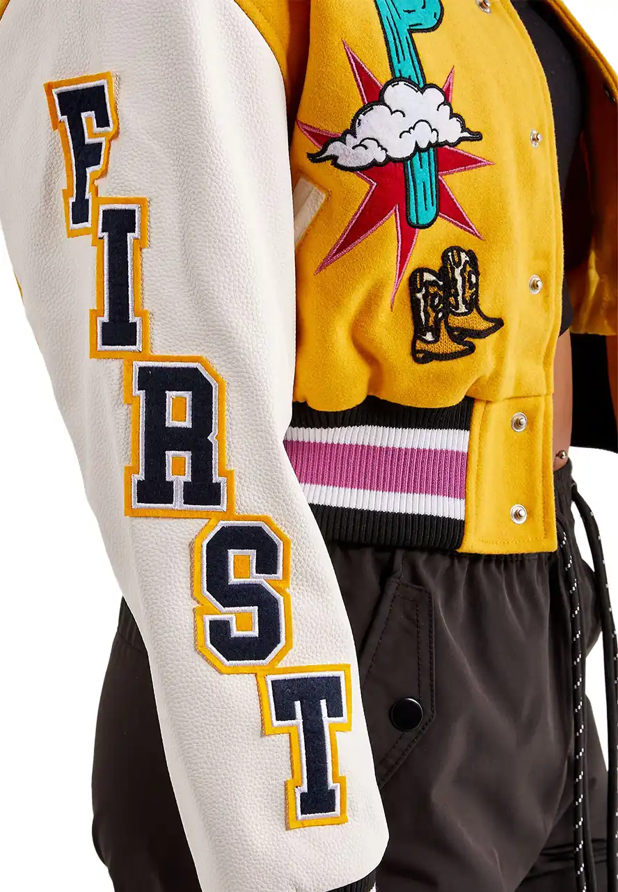 First Row Wild And Free Yellow Wool Varsity Jacket