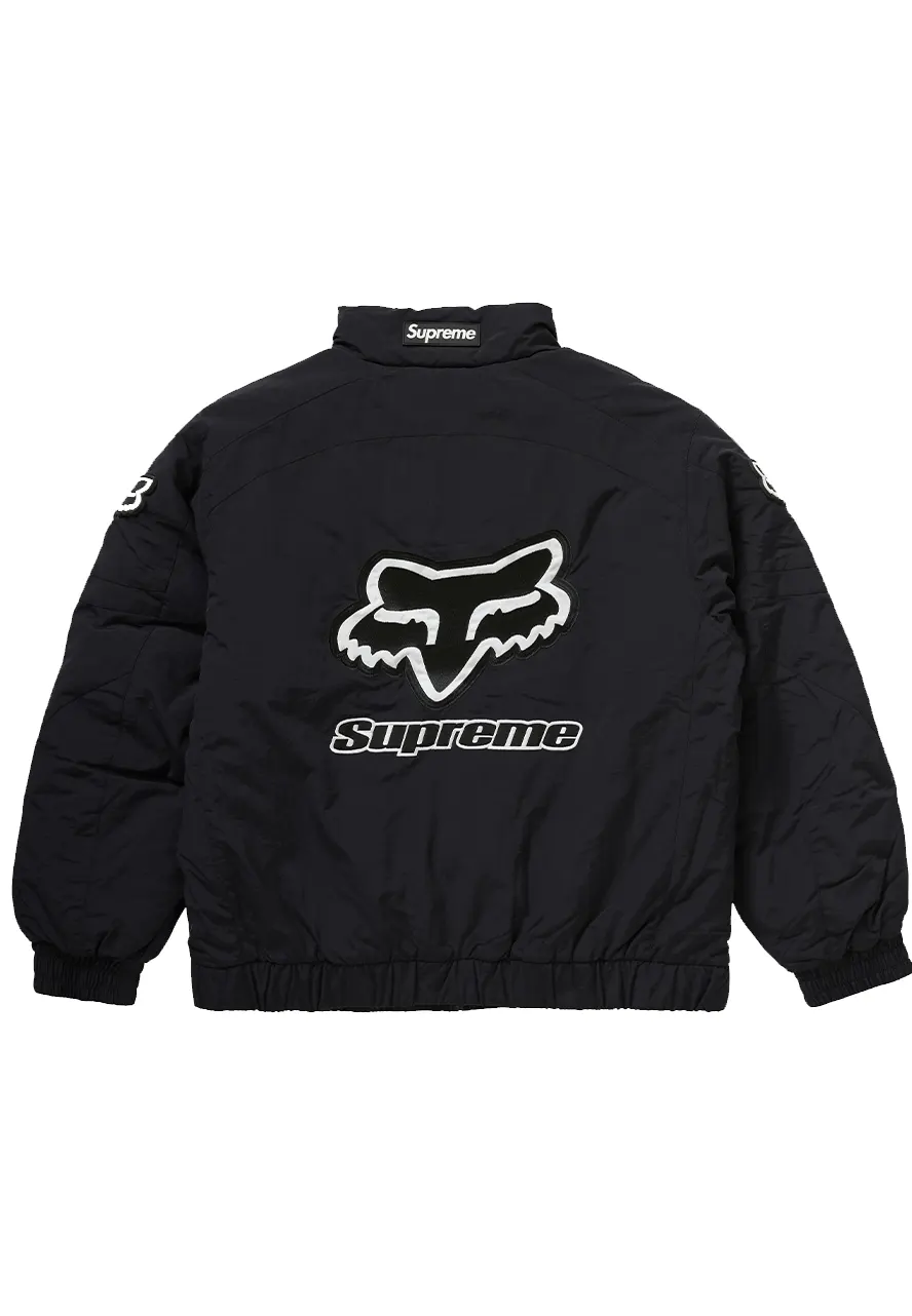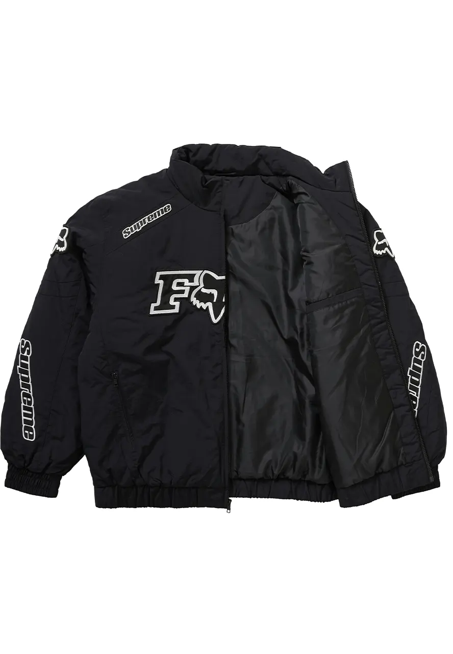 Now own a professional look with the Fox Supreme racer jacket that has a timeless silhouette and flawless tailoring for a sophisticated look, you can embrace cool style. This supreme racer jacket has been fabricated by a premium-quality parachute to make it warm and ageless, while its soft viscose inner will comfy you all day long. The strong black color will give you stunning looks. The supreme racer puffy jacket has been styled using smart features like a stand-up collar, smooth zippered closure, elastic cuffs and hemline, and side waist pockets. The supreme racer jacket will look fantastic with any outfit in your wardrobe, just add sneakers to look cool and entirely different from all around you.