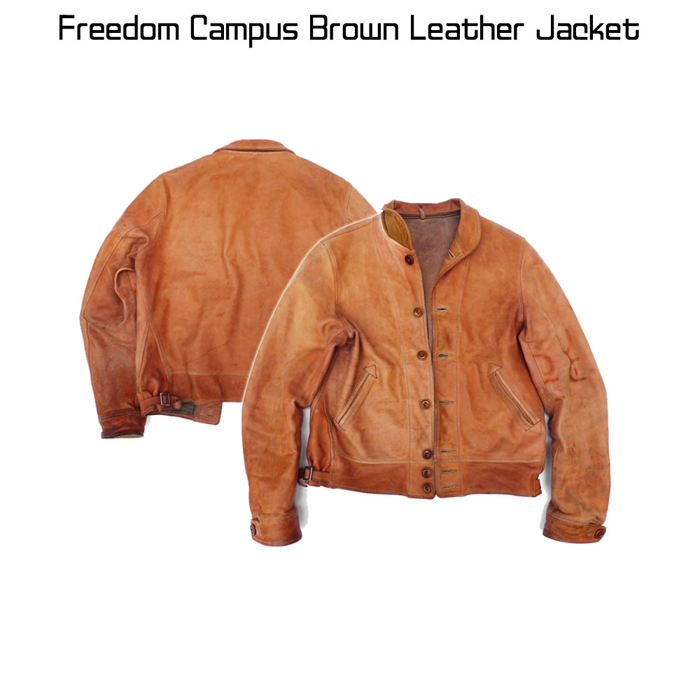 Perso campus jacket is a perfect pick for you if you are looking for an attire to carry for casual as well as formal occasions. It is produced from top quality genuine leather material. The internal lining of soft and comfortable viscose keeps you warm and comfy all the time. Freedom campus jacket comes with front appealing buttoned closing. It comes with long length style sleeves and buttoned cuffs. The shirt style collar fits in with the style of this tan brown jacket perfectly. It has two front waist pockets where you can secure your stuff. This jacket will give you an astounding and captivating look.