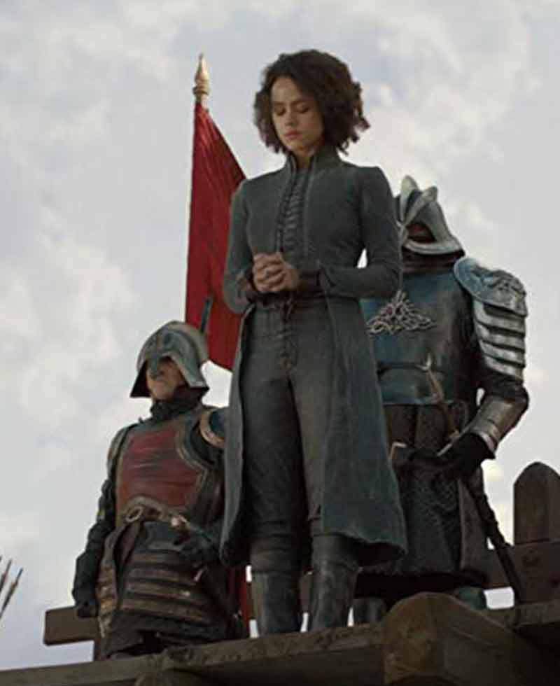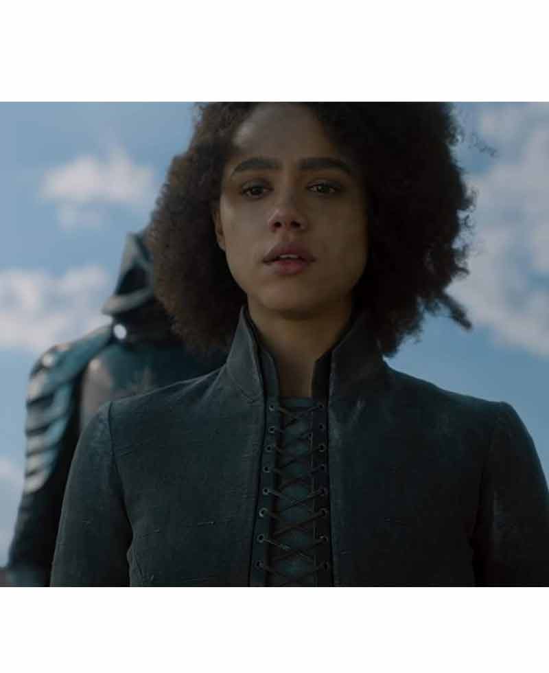 Missandei coat was worn in the famous American thriller television drama series titled as “game of thrones Winterfell” by the gorgeous Nathalie Emmanuel. This trench coat has a very detailed design. It is made from woolen material with internal soft viscose relaxing lining. This coat guards you against the cold climate. The game of thrones Winterfell Nathalie Emmanuel coat comes in black color. The front laces closure style looks very classy. Open hem cuffs come with long length sleeves. It has a high stand up style attractive collar. The two inside pockets provide you space for securing stuff. The coat has a belt which gives it a fitted and classic look. If you are searching for a garb for Halloween and cosplay then this is the perfect pick.